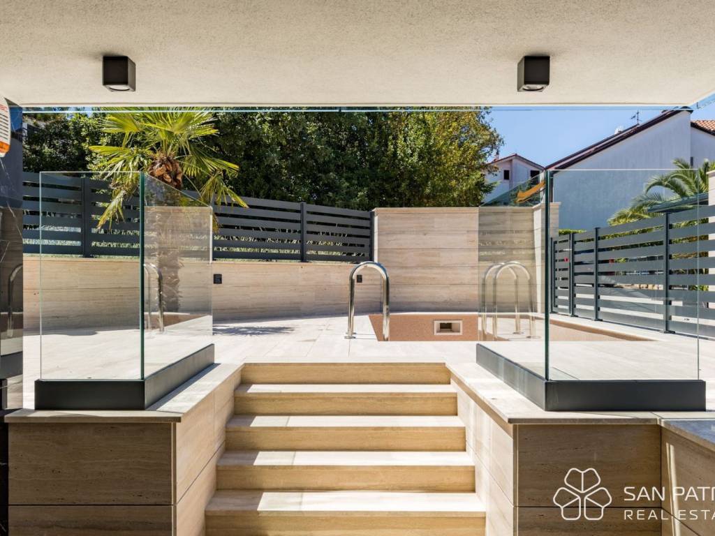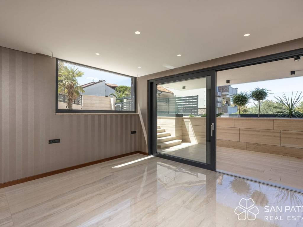 During construction, the highest quality standards were observed with great attention to detail such as: underfloor heating and Mitsubishi air conditioning in all rooms, exterior joinery with large sliding walls, first-class ceramics and travertine facade, burglar-proof exterior and interior doors by Diere manufacturer, electric vehicle charging station, landscaped yards and gardens enriched with Mediterranean plants, and many other details.