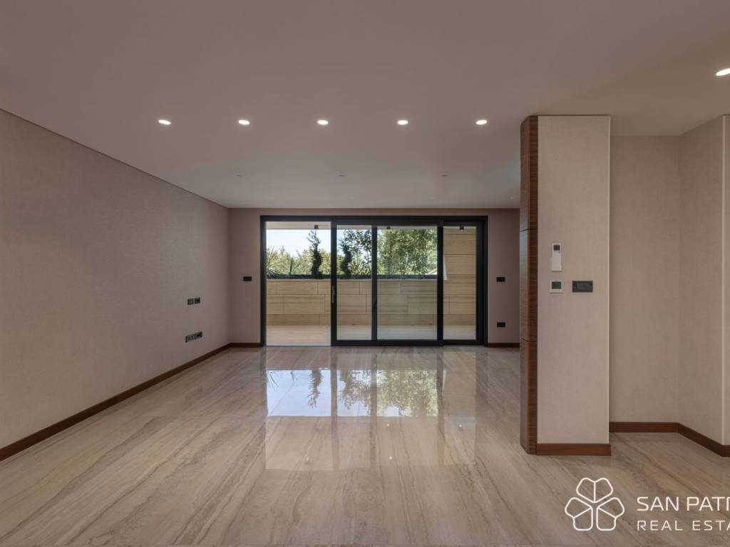 Apartment S1 - ground floor - living area 100.38 m2 (3 bedrooms + 2 bathrooms + WC) + covered terrace (13.34 m2) + garden with heated pool (28.52 m2) + 2 outdoor parking spaces = 780,000 EUR