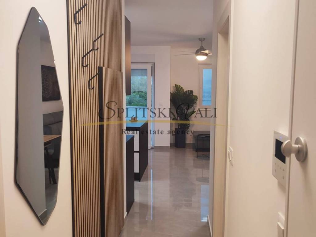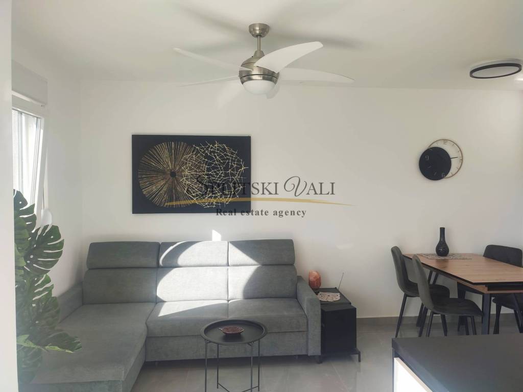 Sastoji se od dvije spavaće sobe, kupaonice, moderne kuhinje te open space dnevnog boravka s blagovaonicom. Prostor je svijetao, funkcionalan i ugodan za boravak, a veliki vanjski dio dodatno pruža mogućnost opuštanja i boravka na otvorenom.