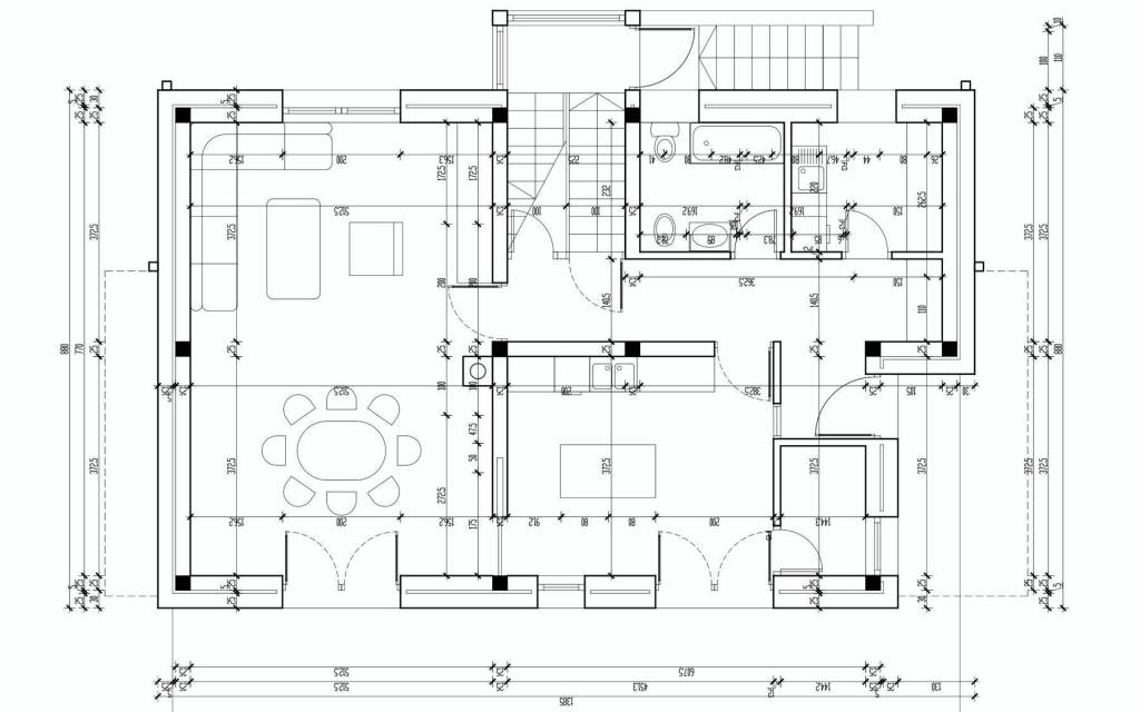 The villa is built with a triple structure – porotherm brick, a layer of insulation, and a final wall of authentic Lun stone, manually set without adhesive.