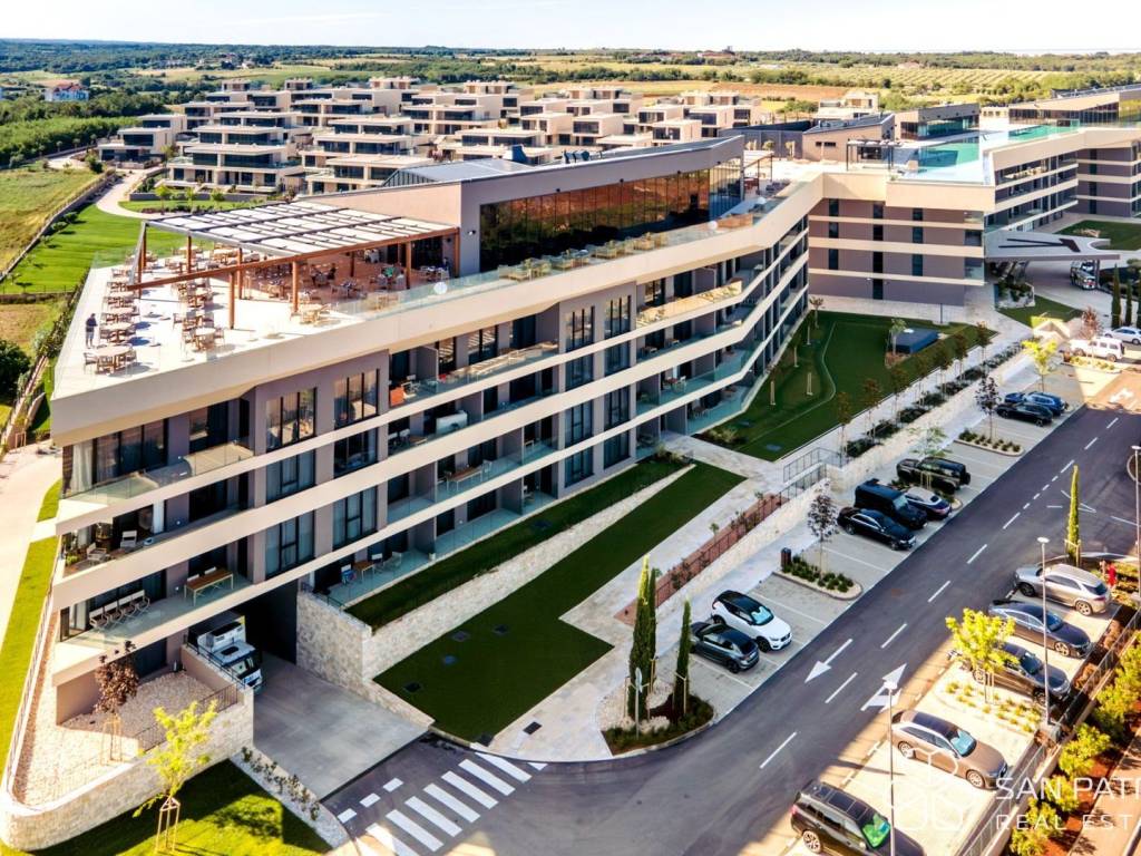 Life at Petram Resort delivers a world-class experience. The largest rooftop infinity pool in Europe, stretching 105 meters, offers breathtaking views of the Piran Bay and unforgettable sunsets. A fine dining rooftop restaurant combines international and Istrian cuisine, while the summer trattoria brings relaxed Italian charm. The spa and wellness center spans several levels and includes an indoor heated pool, five saunas with panoramic sea views, luxury massage treatments, and private spa suites for couples. The resort also offers a private beach, fitness center, children’s pools and playgrounds, and is only five minutes away from Croatia’s largest 18-hole golf course. Owners and guests benefit from 24-hour reception, concierge services, electric buggy transportation within the resort, valet parking, and top-level security.