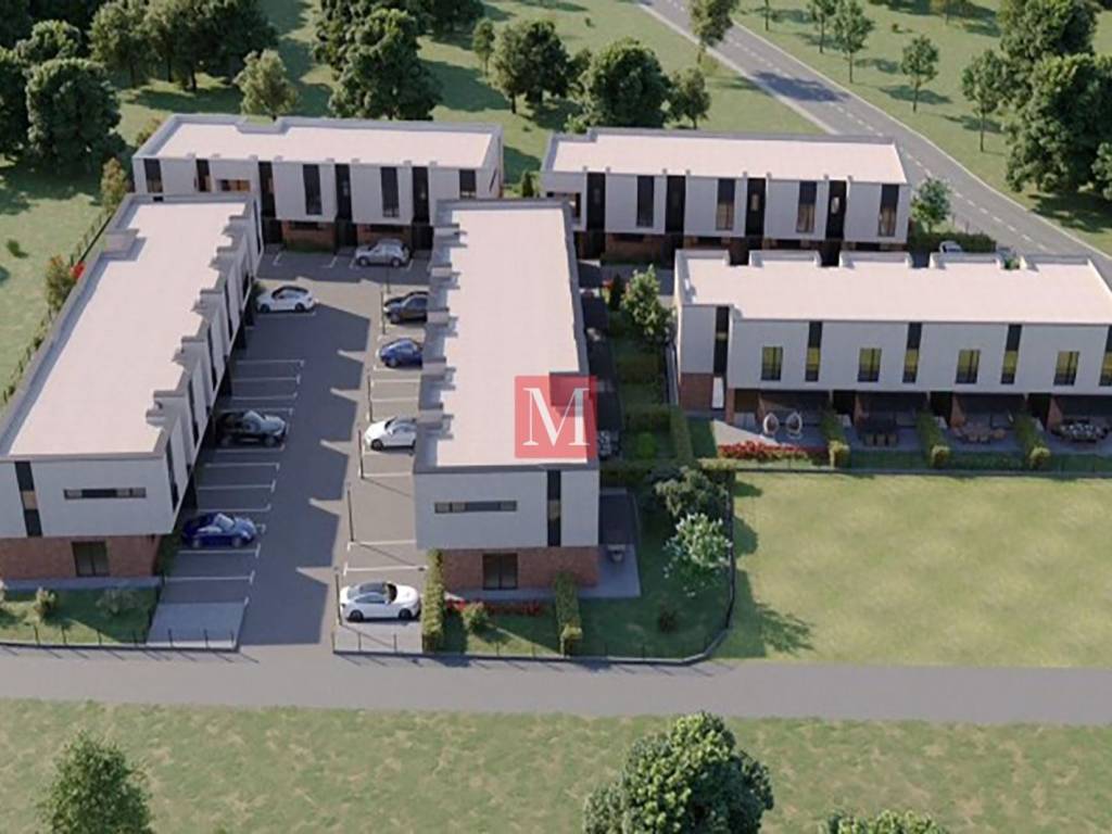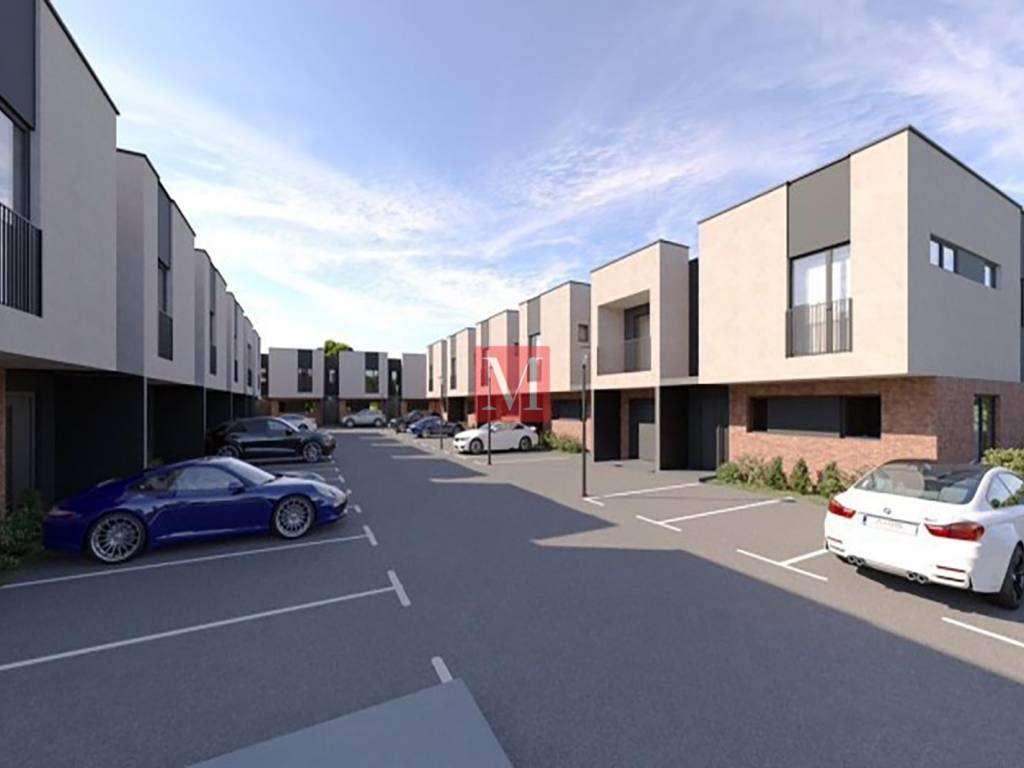 Modern 3-bedroom terraced house in the new Family Park Jastrebarsko development with garden, terrace, garage and 2 outdoor parking spaces.