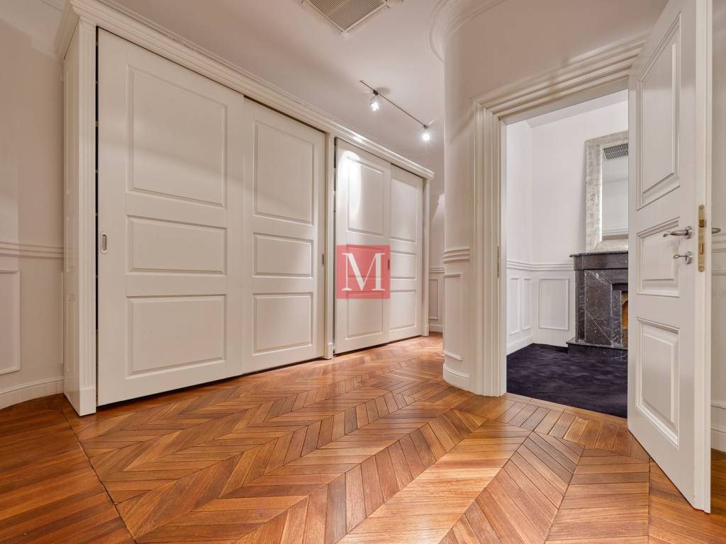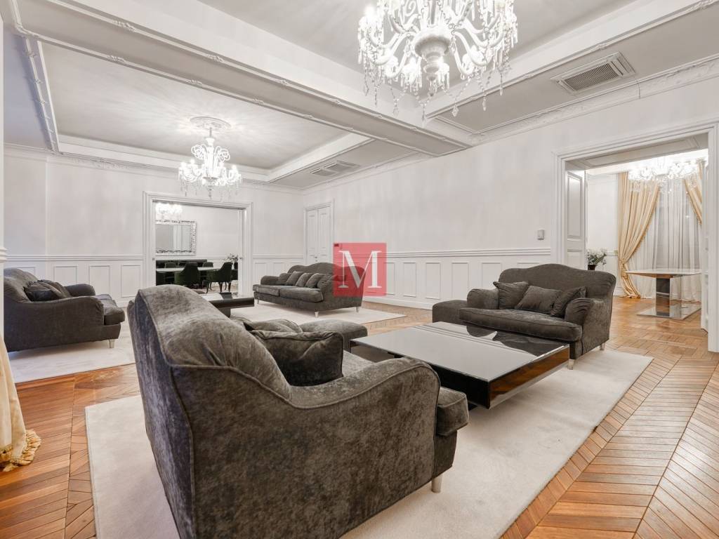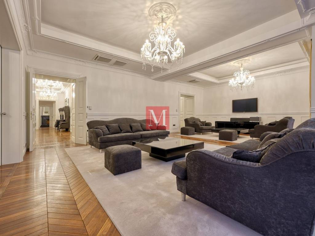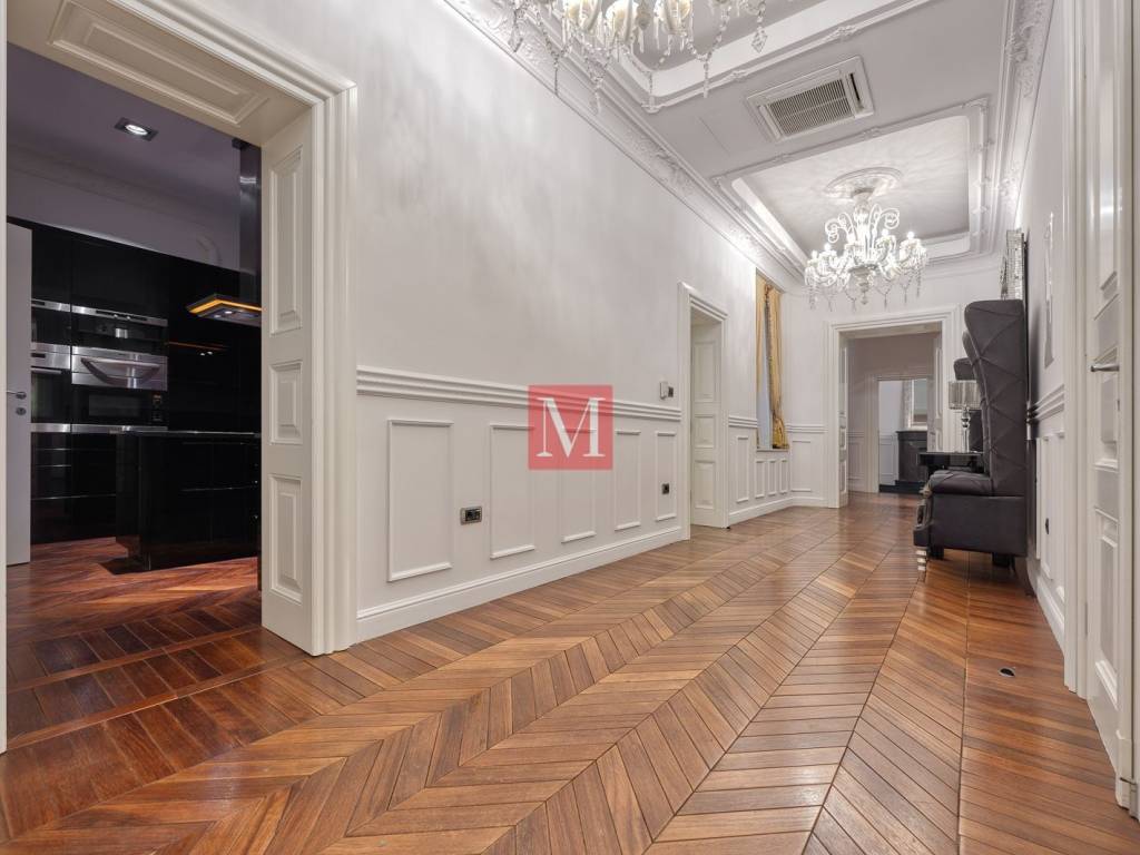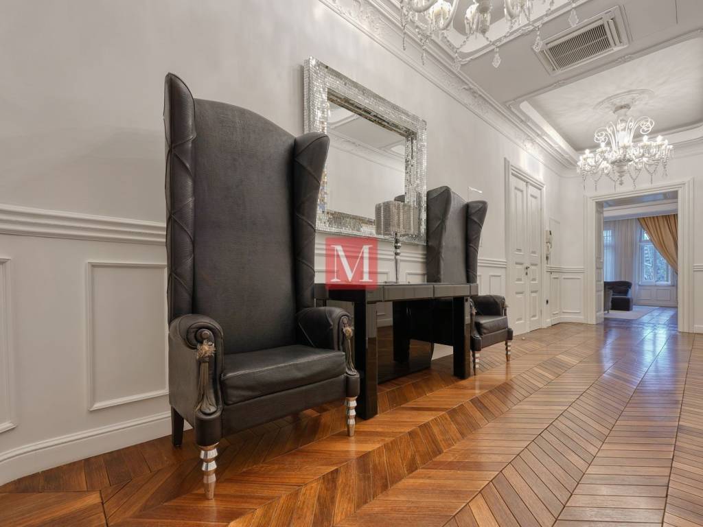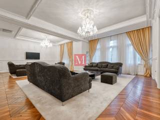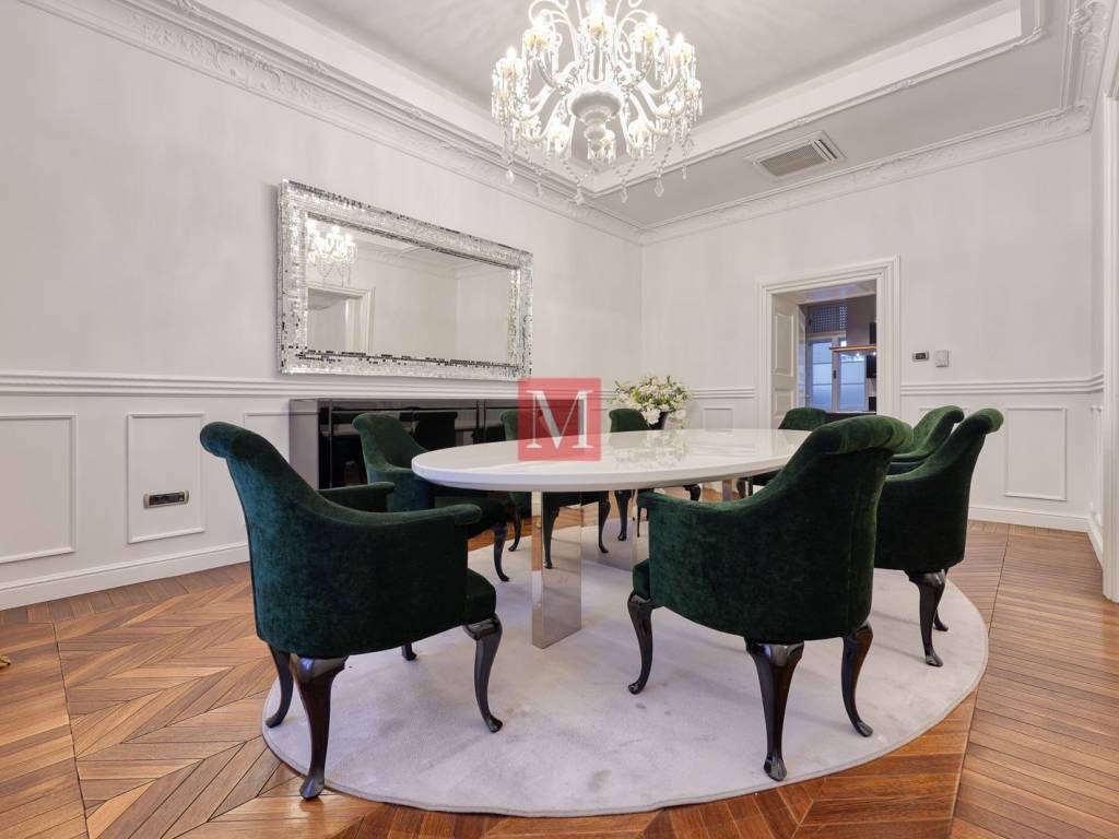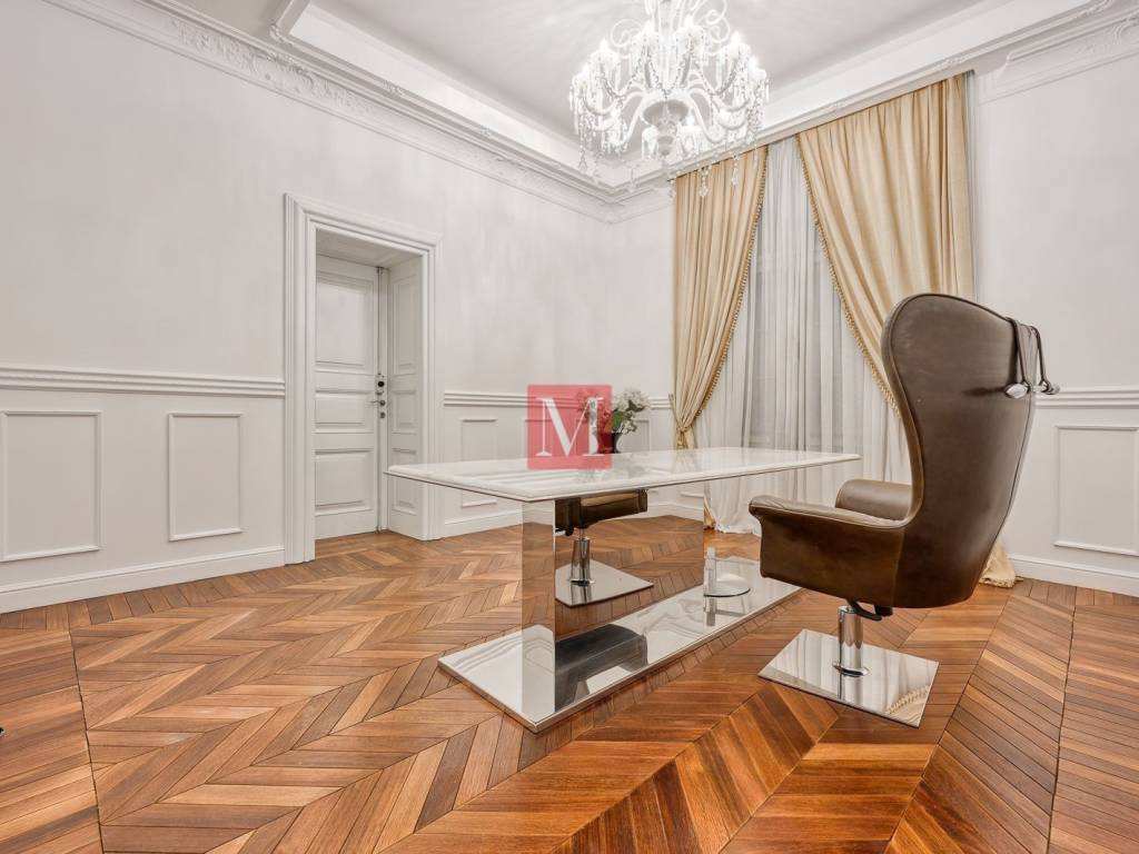 Luxurious 4-bedroom apartment of 273m2 that extends along the entire 2nd floor of the building in a quiet part of the center of Zagreb, offering views of the park. It consists of an impressive entrance hall with a guest toilet and wardrobe, a large and spacious living room, a dining room, a large kitchen and a study, with a western orientation. The sleeping area is completely separate and is located on the east side. It consists of a master bedroom with a large fireplace and an attached bathroom with a wardrobe, two smaller bedrooms each with a bathroom and a wardrobe, as well as an additional guest toilet and a small balcony. The apartment has been completely renovated and adapted to luxurious family life. The ceilings are lowered to 345 cm, new carpentry, high-quality parquet floors, stone in the kitchen and bathrooms, and designer furniture and lighting throughout the apartment have been installed. Agency recommendation - ideal for residential or business space! Agency fee: 1 month rent + VAT.