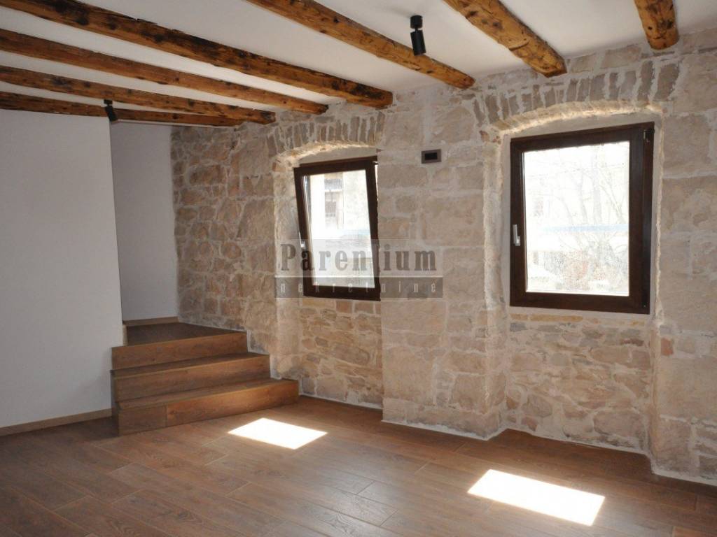 surroundings, in a place 17 km from the city of Poreč and the sea, known for its wine roads and taverns, this completely renovated stone house is for sale. The area is 78 m2 spread over three floors. The ground floor has a living room with a kitchen and a bathroom, while the first and second floors have bedrooms. There are air conditioners for heating and cooling in all rooms of the house.