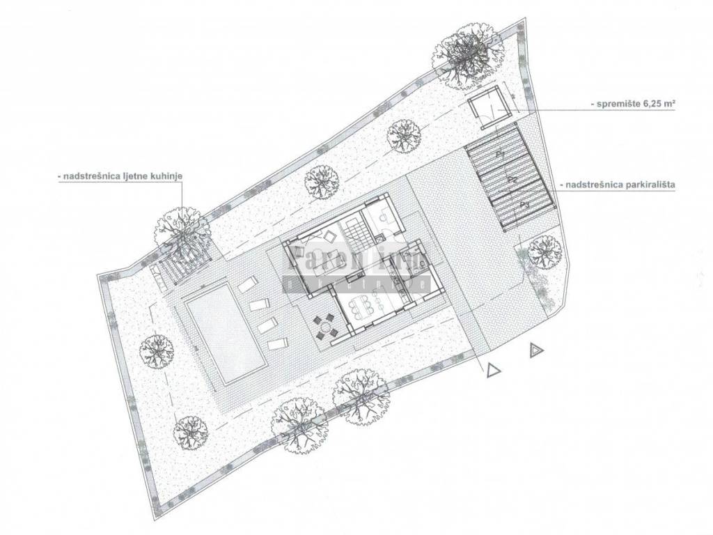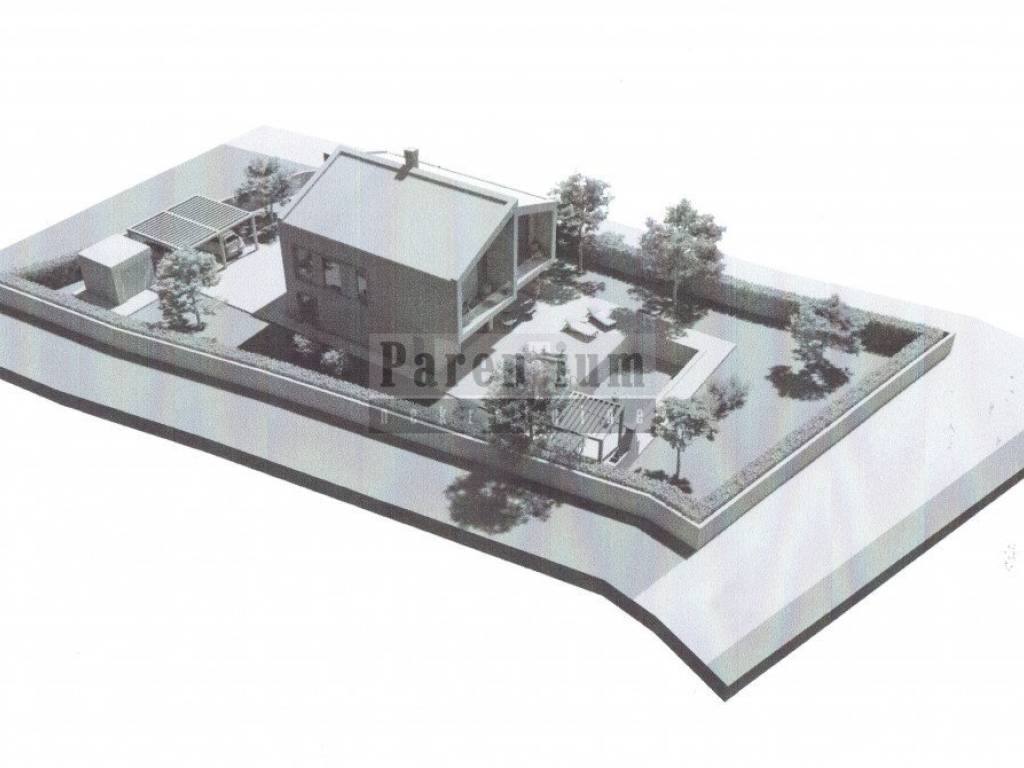 Nel comune di Visignano, e vicino a Baderna, è in vendita un terreno edificabile, con un permesso di costruzione valido per una villa con piscina e cucina estiva. Sul terreno di 990 mq esiste un progetto o concessione edilizia per la costruzione di una villa con piscina di 185 mq. Il permesso di costruire è valido e la costruzione può iniziare immediatamente. Il progetto della casa è concepito su due piani. Piano terra con soggiorno, cucina e sala da pranzo, sala studio, ripostiglio e bagno. Al primo piano ci saranno 3 camere da letto con bagno. Giardino con piscina e cucina estiva.