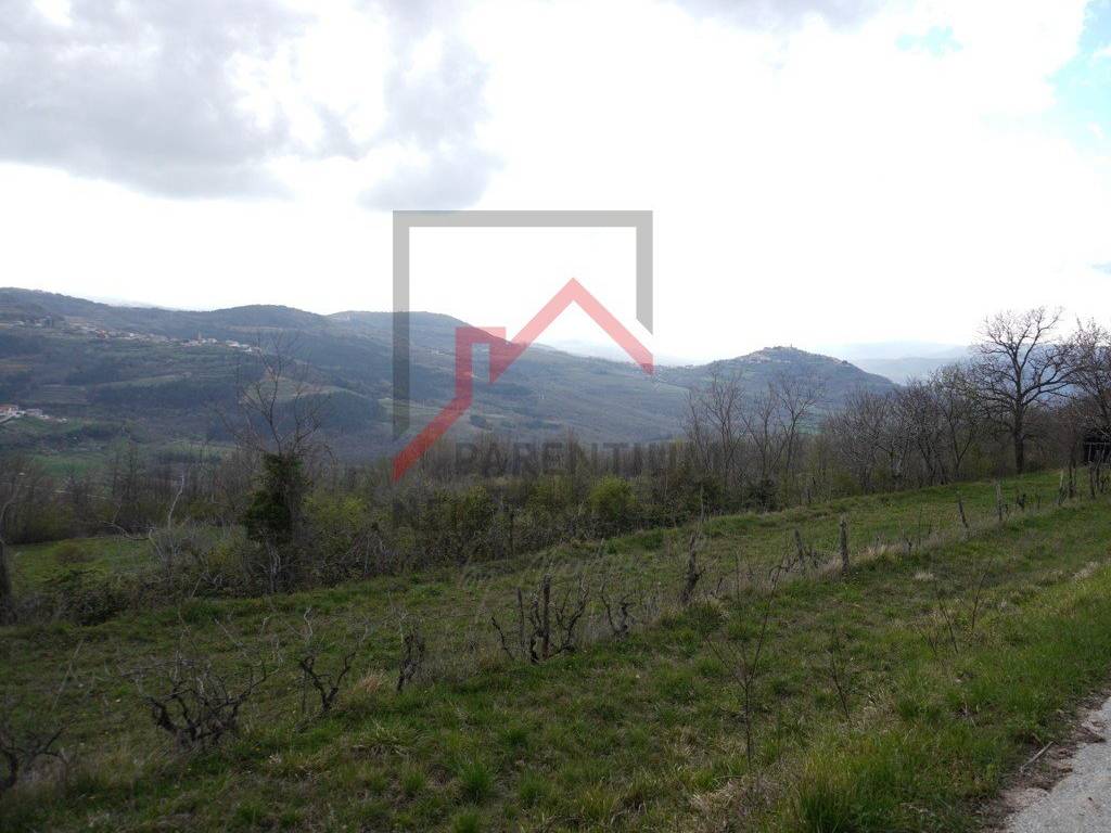 Vicino ad un tipico villaggio istriano su una collina, si vende un terreno con vista aperta verso Montona, con una superficie totale di 3059 m. Di cui circa 1300 mq edificabili.