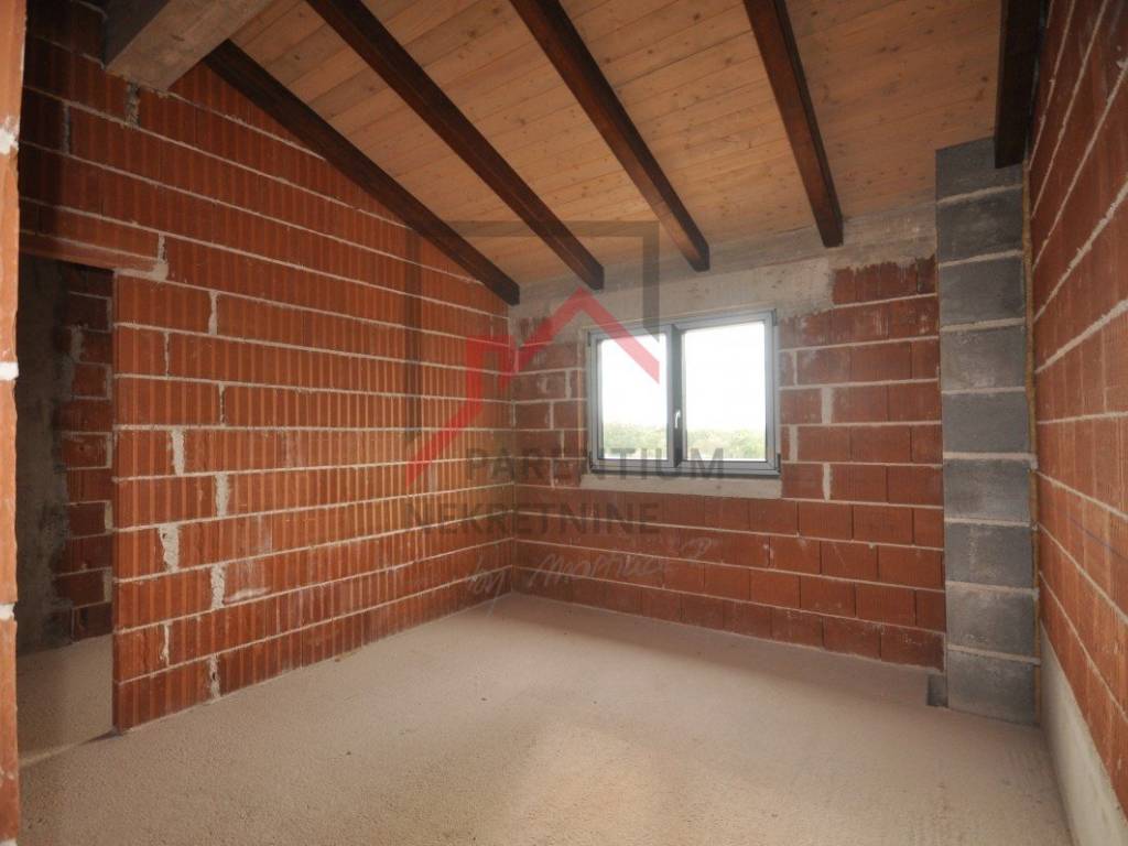 In un piccolo villaggio vicino a Sanvincenti e Dignano, è in vendita una casa in fase di roh bau con piscina e falegnameria. La casa si sviluppa su due piani, con una superficie totale di 193m2, su un terreno di 648m2.