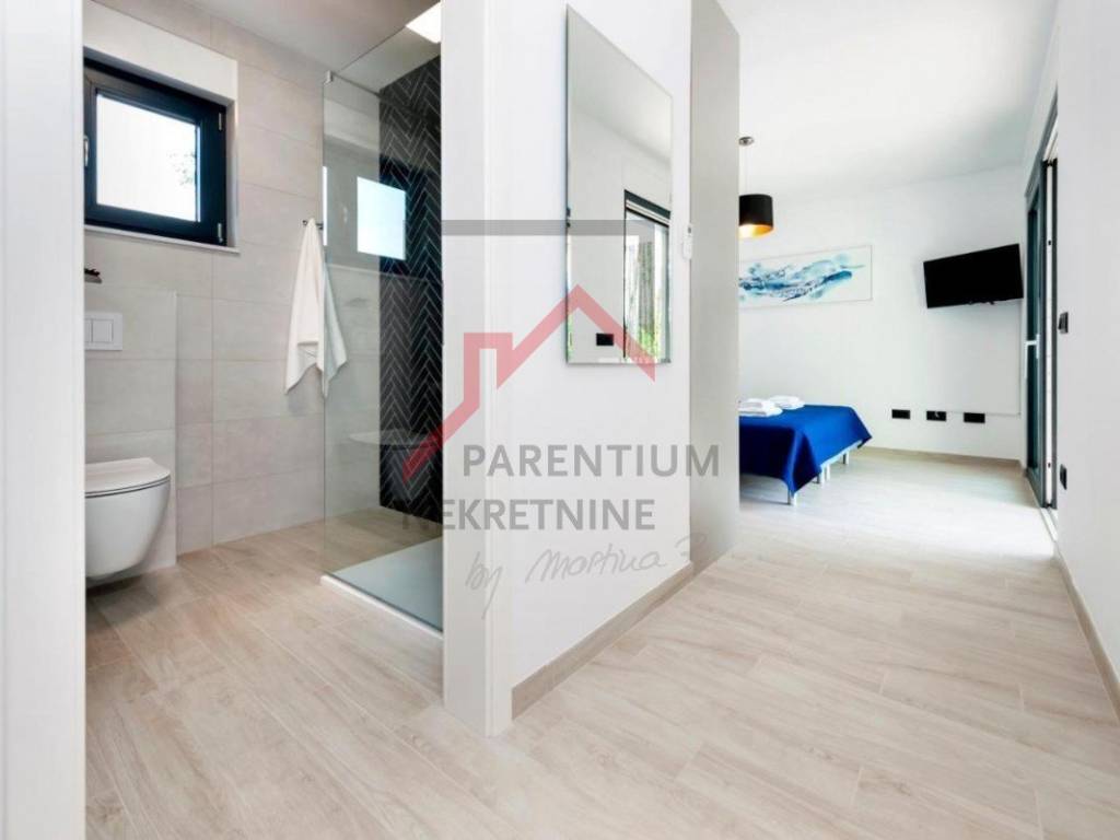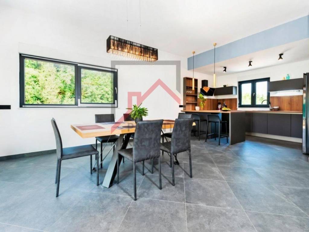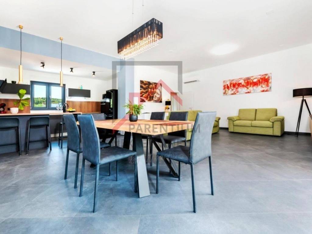 In una zona tranquilla immersa nel verde, vicino al centro di Rovigno, si trova questa splendida casa di nuova costruzione che offre la perfetta combinazione di design moderno, funzionalità e comfort. Questa elegante proprietà offre tutto il necessario per una vita confortevole o una vacanza rilassante nel cuore del Mediterraneo.