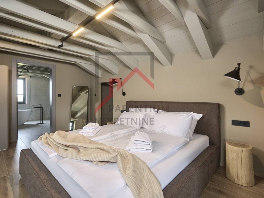 Nella mansarda, di 96 m, si trova un'altra camera da letto con bagno, una sala TV e un'uscita sulla terrazza sul tetto con vista aperta sul mare.