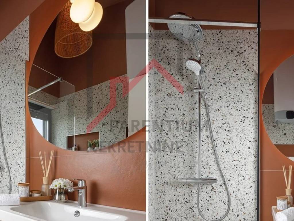 Poreč,Nahe dem Zentrum von Poreč und nicht weit vom Meer wird ein Reihenhaus verkauft. Das Haus hat eine Fläche von 112 m und erstreckt sich über 3 Etagen: Keller, Erdgeschoss und erster Stock.Im Erdgeschoss des Hauses befindet sich ein Wohnzimmer mit Küche und Essbereich, das auf den Garten mit einem Jacuzzi und einer Relaxzone führt. Im ersten Stock gibt es zwei Schlafzimmer und ein Badezimmer. Im Keller gibt es einen Raum, den zukünftige Eigentümer nach ihren Wünschen gestalten können: zum Beispiel als Weinlager, Taverne, Schlafzimmer oder Spielzimmer.Im Haus ist eine elektrische Fußbodenheizung installiert, und in jedem Raum befinden sich Heiz- und Kühlgeräte.Zum Haus gehören 2 Parkplätze. Das Haus wird voll möbliert verkauft.Eine interessante Immobilie, die als Ferienhaus, Mietobjekt oder zur Lösung der Wohnproblematik genutzt werden kann.
