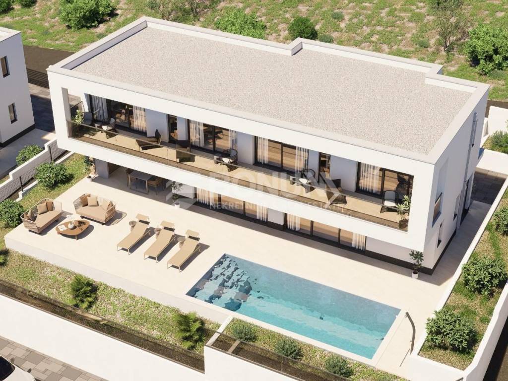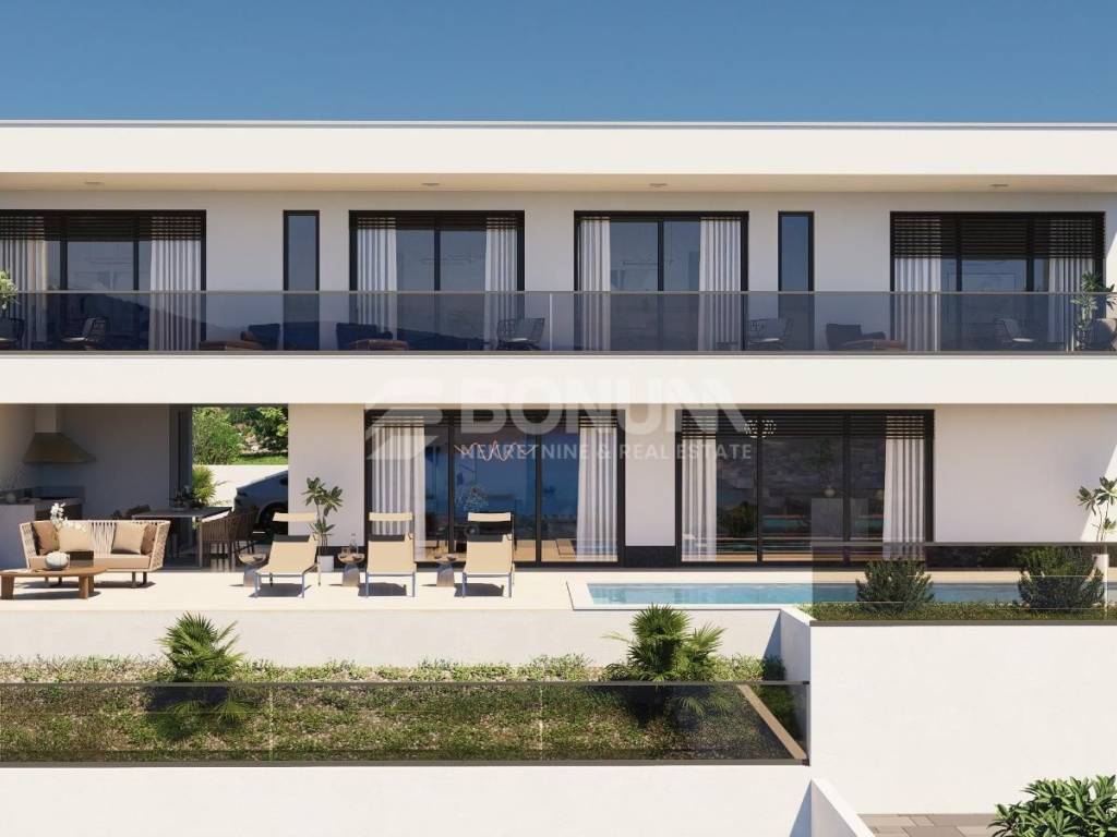 In the peaceful and attractive setting of Vinišće, near Trogir, this modern villa is designed for carefree holidays and maximum enjoyment of the Mediterranean lifestyle. Thanks to its elevated position, the property offers a lovely sea view, while contemporary architecture with large glass walls further enhances the sense of space and natural light.