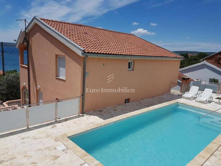 Maslenica, in vendita, è una casa familiare opportunamente mantenuta in una splendida posizione a 100 m dal mare. La casa ha una superficie abitabile di 280 mq composta da seminterrato, piano terra e sottotetto. Nella parte anteriore del cantiere ci sono anche tre posti auto, e nella parte posteriore del cortile c'è una piscina di 9 × 3,7 metri con un'area prendisole di circa 100 mq.