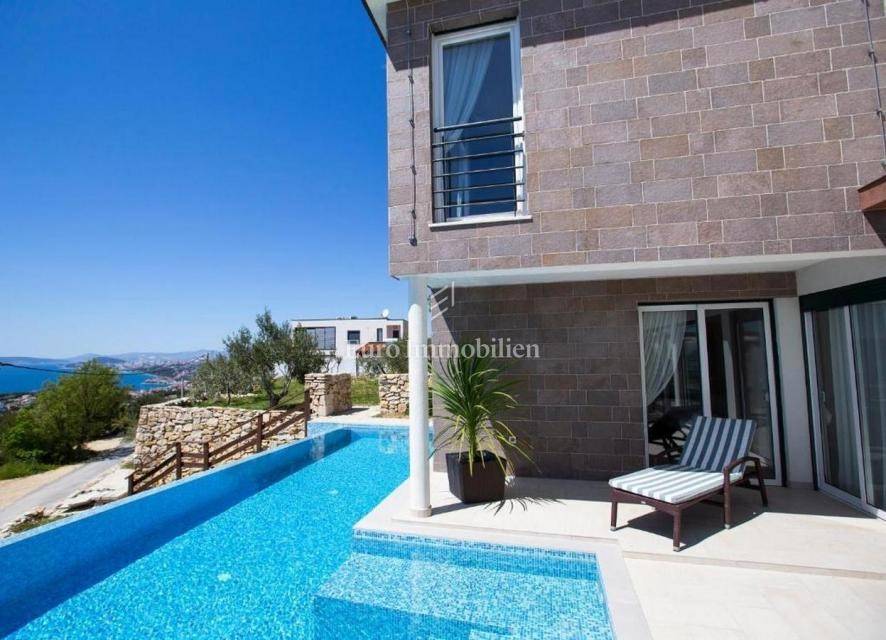 Two modern luxury villas for sale with a wonderful sea view in a quiet location. The villas are located on a plot of about 3,000 m2, surrounded by greenery.