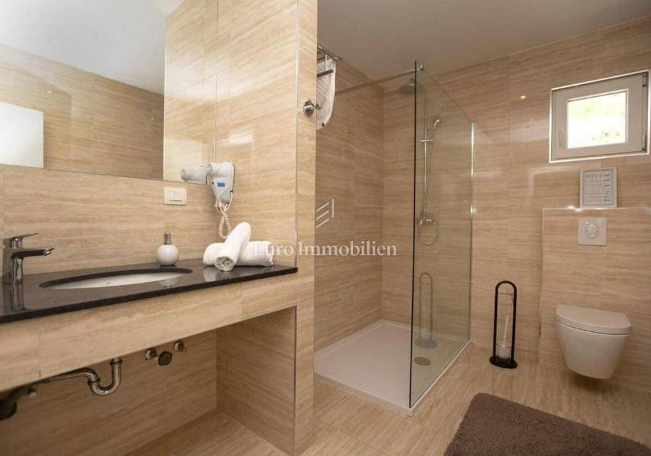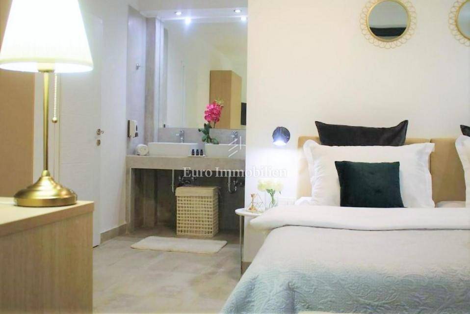 Villa 2 - the internal floor plan of the villa shows two apartments of 87 m2 total area. The apartments are identical in layout and have separate entrances. So, both apartments have two bedrooms with private bathrooms, one toilet, hallway and open space living room, kitchen and dining room with access to a comfortable covered terrace. The terrace of about 20 m2 offers beautiful sea views.The exterior of the property includes a large swimming pool with sun deck, a garden and a summer kitchen with a social area. The whole villa is furnished, well equipped and ready to move in. There is a parking lot for four cars.