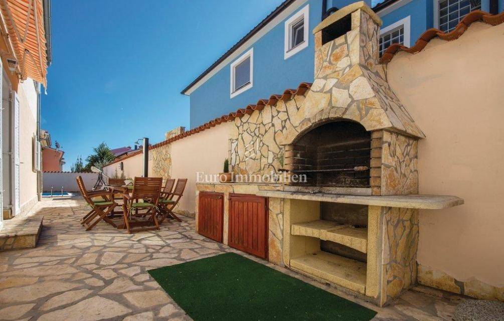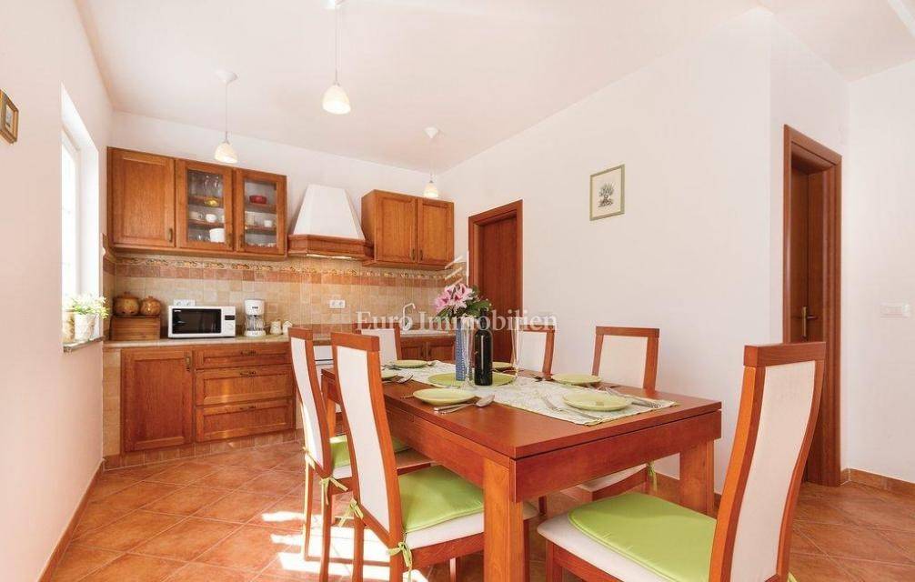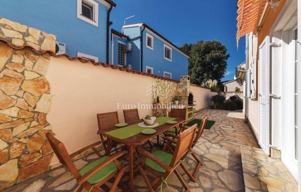 The property is located in Barbariga. It consists of ground and first floor. The total living area is 134.75 m2 and was built in 2012 on a plot of 396 m2. The property consists of a living room, kitchen and dining room, three bedrooms, two bathrooms and a beautifully landscaped garden with a swimming pool, brick barbecue and a place to hang out with friends and family. The highest quality materials were used in the construction, the carpentry is PVC, the floor coverings are ceramic tiles. The property is fully air-conditioned and has a wood stove for heating. It has a garage and two parking spaces. It is located in an excellent location, approx. 900m from the sea. The yard is fenced and offers peace and privacy. An excellent property worthy of attention and a great opportunity for a quiet family life or as a vacation and rental home.