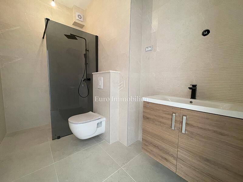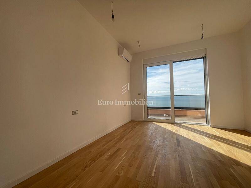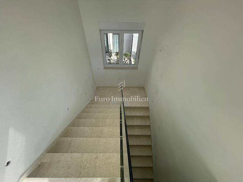 The villa is under construction, the completion of the works is planned for the summer of 2023. The project includes high-quality materials, built-in glass walls with three-layer glasses, aluminum blinds, quality floor coverings, fully equipped bathrooms, a facade with superior thermal and sound insulation, air conditioning, glass fences on terraces that have an unobstructed view of the sea. The villa has two outdoor parking spaces and a beautifully landscaped garden.