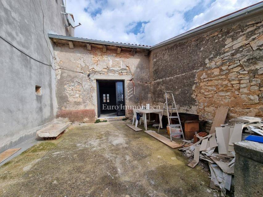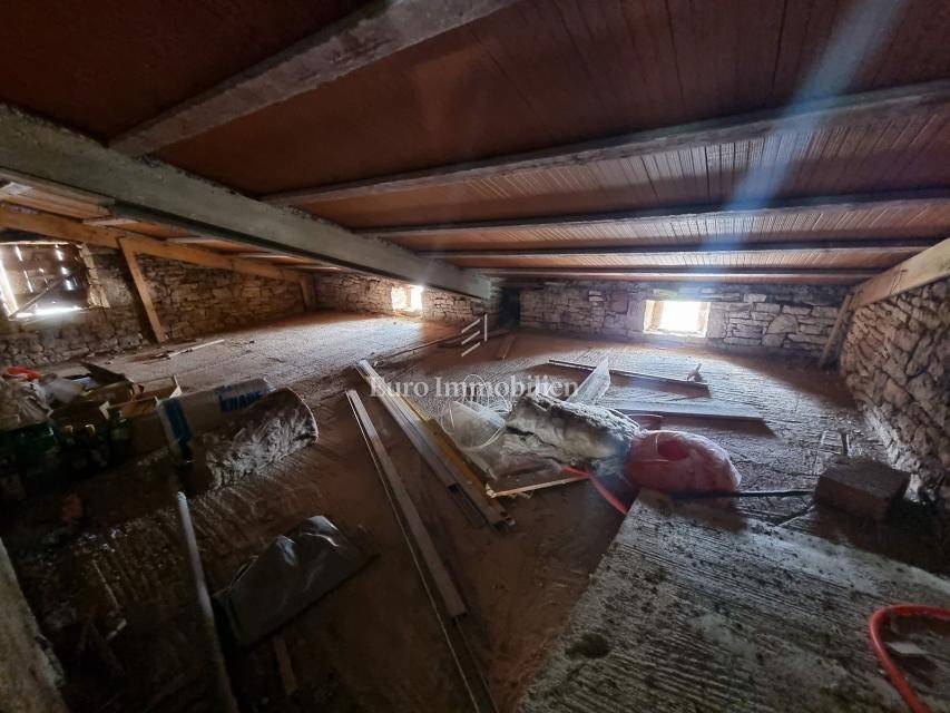 The authentic stone house is located in a small town 3.5 km from Višnjan. The roof, gutters, mezzanine structures, electricity and water installations, glazes (floor), external joinery with mosquito nets and doors were completely renovated, the first phase for air conditioning was installed, all walls were insulated and covered with plasterboard, excavation and preparation for joining was carried out septic tanks on the house. Faucets, laminate and tiles are also included in the price. The house also has a chimney. It consists of two taverns (konobe) on the ground floor that have not been renovated and have separate entrances. External stone stairs lead to the first floor, where there is a spacious terrace and the entrance to the first floor, which consists of a living room, kitchen and dining room, and two bedrooms with one bathroom and a laundry room. There is a third bedroom in the high attic.