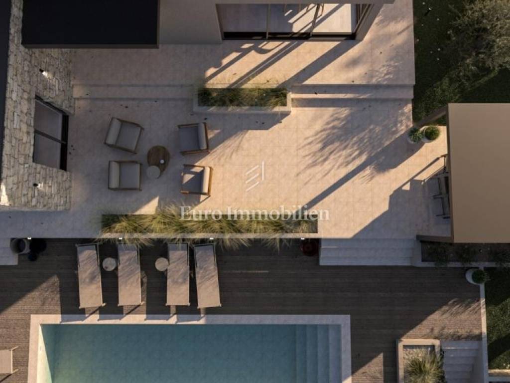 Luxury villa for sale in the final phase of construction in a quiet location near Vrsar. Vrsar is approx. 10 km from Vrsar, and approx. 15 km from Poreč. The area of the villa is 180 m2, and it is located on a plot of land of 938 m2. It extends over two floors, ground floor and first floor. On the ground floor there is an open space concept living area, sanitary facilities, wardrobes, and technical rooms for the central heating system and laundry room with all the necessary connections, as well as rooms for storing personal belongings, bicycles and mobile equipment for the garden and swimming pool. Part of the ground floor is designed as a wellness area with a sauna and shower. There are three bedrooms with a bathroom on the first floor. On the fenced garden enriched with olive trees, indigenous flowers and a lawn with irrigation, there is a swimming pool with a heating system of 40 m2 with a sun deck, and a fireplace with a covered dining area where the summer kitchen is located. Parking for two vehicles with a charger for electric vehicles. During the construction, top quality materials and equipment were used, such as facade insulation of 10 and 15 cm, PVC windows, aluminum sliding shutters in the rooms, sliding glass walls on the ground floor, water-based underfloor heating with a Mitsubishi heat pump, cooling system, filomuro doors, floor lining microtopping, Italian furniture and lighting, and top equipment in the interior as well as in the exterior.