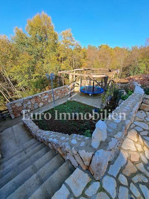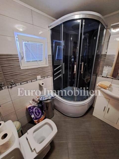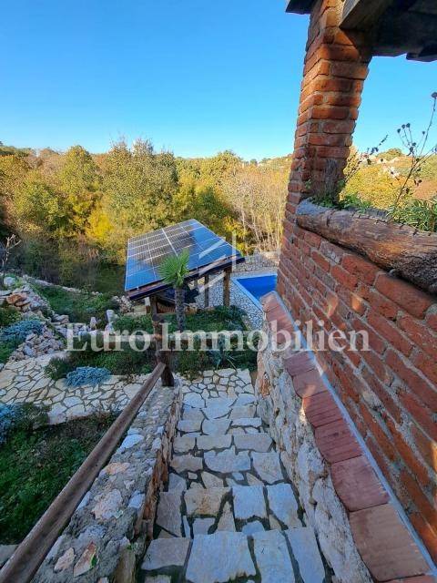 The house was built on a plot of land of 1900m2. It is located in a quiet location, at the end of a cul de sac. It is a tall one-story building with a furnished apartment on the lower floor. The apartment consists of a living room with a kitchen, two bedrooms, and a bathroom. The upper floor is in the renovation phase with great potential for the decoration of another apartment. There is a heated swimming pool and a 5.28 kW solar power plant in the large garden. The house also has a covered terrace for hanging out with friends and family, an outdoor shower, a sun deck, and parking. Opportunity for investment in tourism as the house is successfully rented out for tourist purposes.