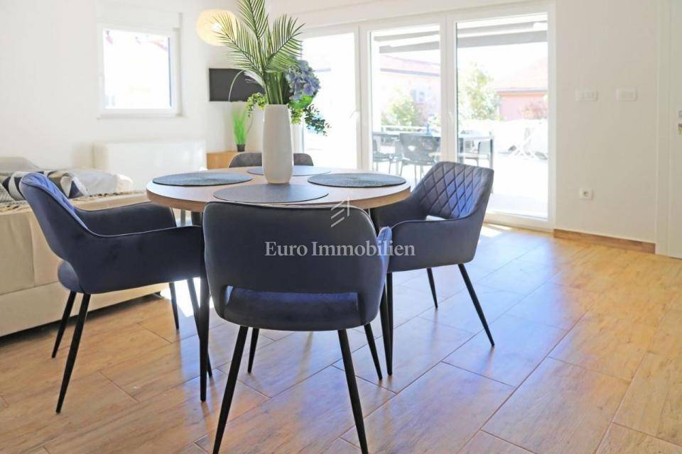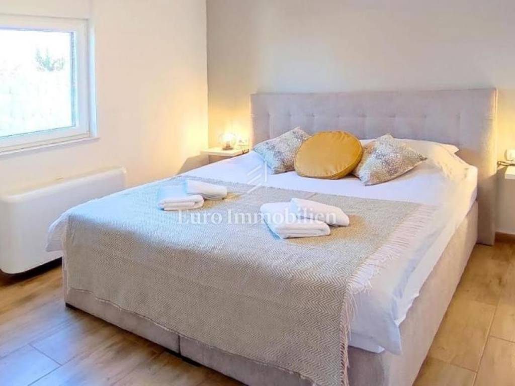 Isola di Krk, Malinska, casa indipendente di pregio di 201,75 m², costruita nel 2021 su un terreno di 525 m². La casa è composta da quattro appartamenti confortevoli e splendidamente arredati. Ogni appartamento è composto da una camera da letto, soggiorno con cucina e zona pranzo, bagno e terrazza. La casa è completamente arredata e dotata di mobili ed elettrodomestici di qualità e dispone di una pompa di calore per il riscaldamento e il raffrescamento.