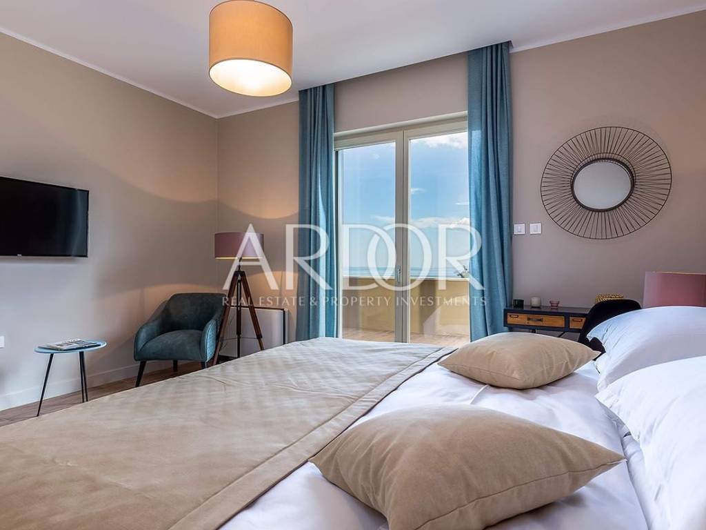 Su due piani lussuosamente attrezzati di circa 400 m2, ci sono 5 camere da letto con guardaroba privati, 5 bagni, ampio soggiorno con cucina e zona pranzo, palestra e sauna. Il piano terra occupa un soggiorno e sala da pranzo open space adatto alla socialità, dove nella parte centrale si trova un grande tavolo per dieci persone e un camino a legna. Grandi aperture vetrate collegano l'intero piano terra con terrazze e zone prendisole e una piscina riscaldata di 12x6 m.