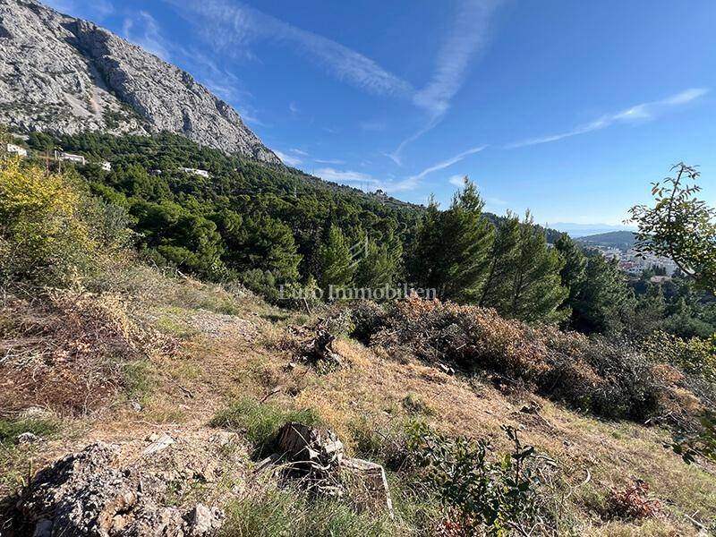 Terreno edificabile a prezzi accessibili a Makarska, superficie di 1495 m², con splendida vista sul mare e sulle isole.