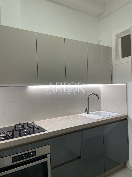 Un appartamento con tre camere da letto, completamente ristrutturato di recente, è in affitto nel centro di Fiume, in una posizione privilegiata a soli due minuti a piedi dal Korzo. L'appartamento si trova al primo piano di un edificio di cinque piani ben tenuto e si estende su una superficie di 75 m².