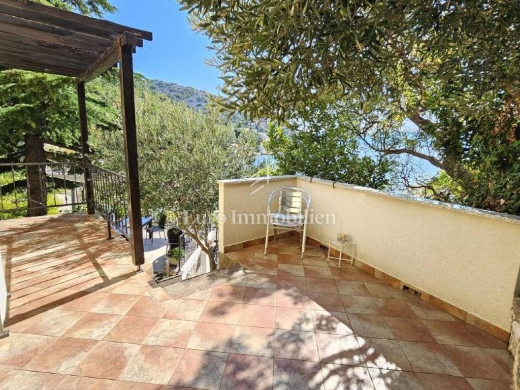 In vendita casa bifamiliare su più piani, situata direttamente sul mare, completamente ristrutturata e subito abitabile. Lungo la strada di accesso si trova un garage e, sopra di esso, una piccola officina con terrazza e allacci per acqua ed elettricità. Il piano terra, collegato al giardino, comprende cucina, sala da pranzo, soggiorno e bagno.
