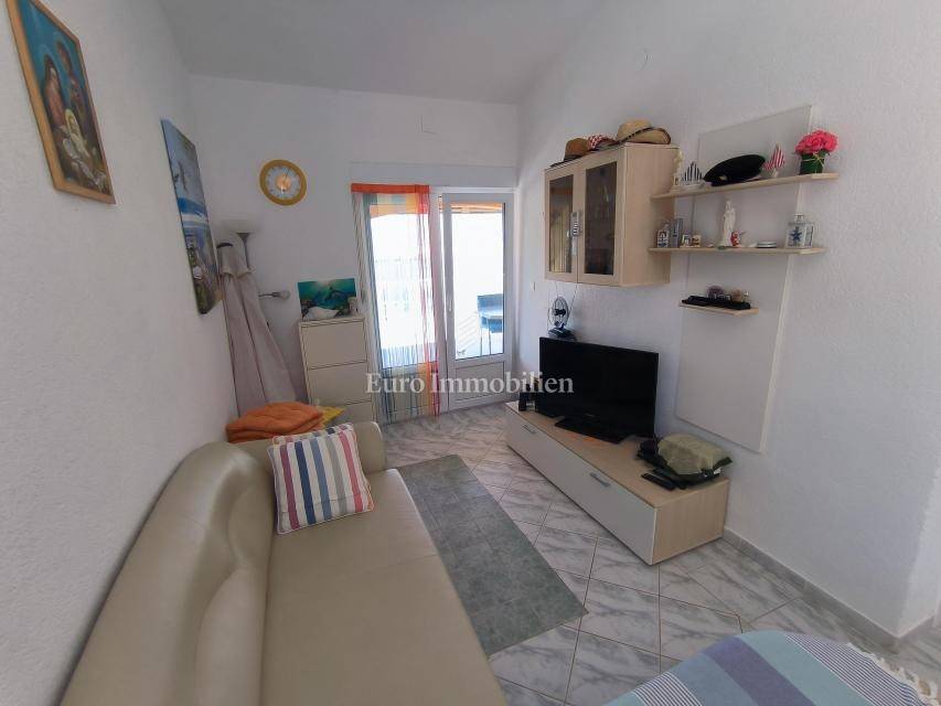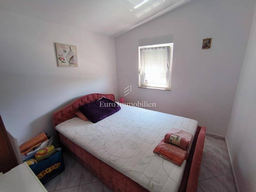 In vendita appartamento di 60 m² composto da due camere da letto e soggiorno. Punto di forza dell’immobile è l’ampia terrazza di 20 m², parzialmente coperta, con vista aperta sul mare e sulle isole. L’appartamento dispone di posto auto di proprietà e giardino con barbecue, situato ai margini di una zona verde.