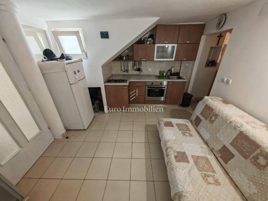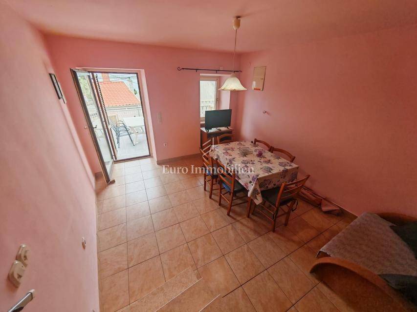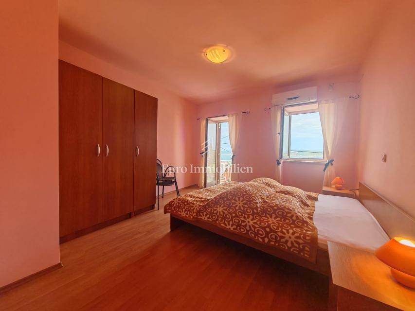 L’immobile è composto da due appartamenti: il piano terra (parzialmente interrato) comprende terrazza d’ingresso, soggiorno con cucina, camera da letto e bagno. L’appartamento duplex al piano superiore offre soggiorno con accesso a un’ampia terrazza, cucina, bagno e due camere da letto, di cui una con balcone e vista mare.