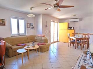 L’appartamento è composto da 2 camere da letto, un bagno, un WC separato, e una cucina open space con sala da pranzo, soggiorno e corridoio. Dall’appartamento si gode una vista sul mare, e nelle vicinanze si trovano negozio, panetteria e bar.