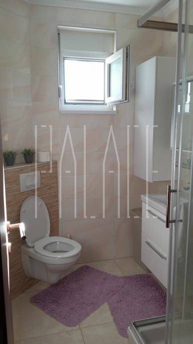 The house has an area of 388 m2 and is located on a plot of 400m2. It was built in 2018. Consists of:- Basement where there is an apartment of 70 m2 consisting of a kitchen with dining room and living room, and one large bedroom, hallway and bathroom.On the same floor, there is a boiler room (central heating with pellets for the whole house) and a laundry room. The total area of the basement is approx. 88m2- Ground floor which consists of a four bedroom apartment with two bathrooms (about 90m2) and a terrace in front (30m2). - 1st floor consists of a three bedroom apartment with a loggia and two bathrooms (about 90m2) - 2nd floor - attic consists of a four bedroom apartment with terrace and two bathrooms (about 90m2) The floors are connected by an internal staircase (30m2) In front of the house there is a parking lot for 4 cars. Central heating is provided throughout the house, and each floor has air conditioning.