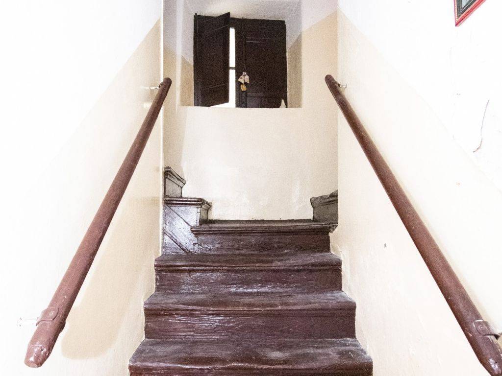 Internal stairs lead to the upper floor where there is an apartment with four bedrooms, a kitchen and a dining room, and two bathrooms, with an area of 85 m2.