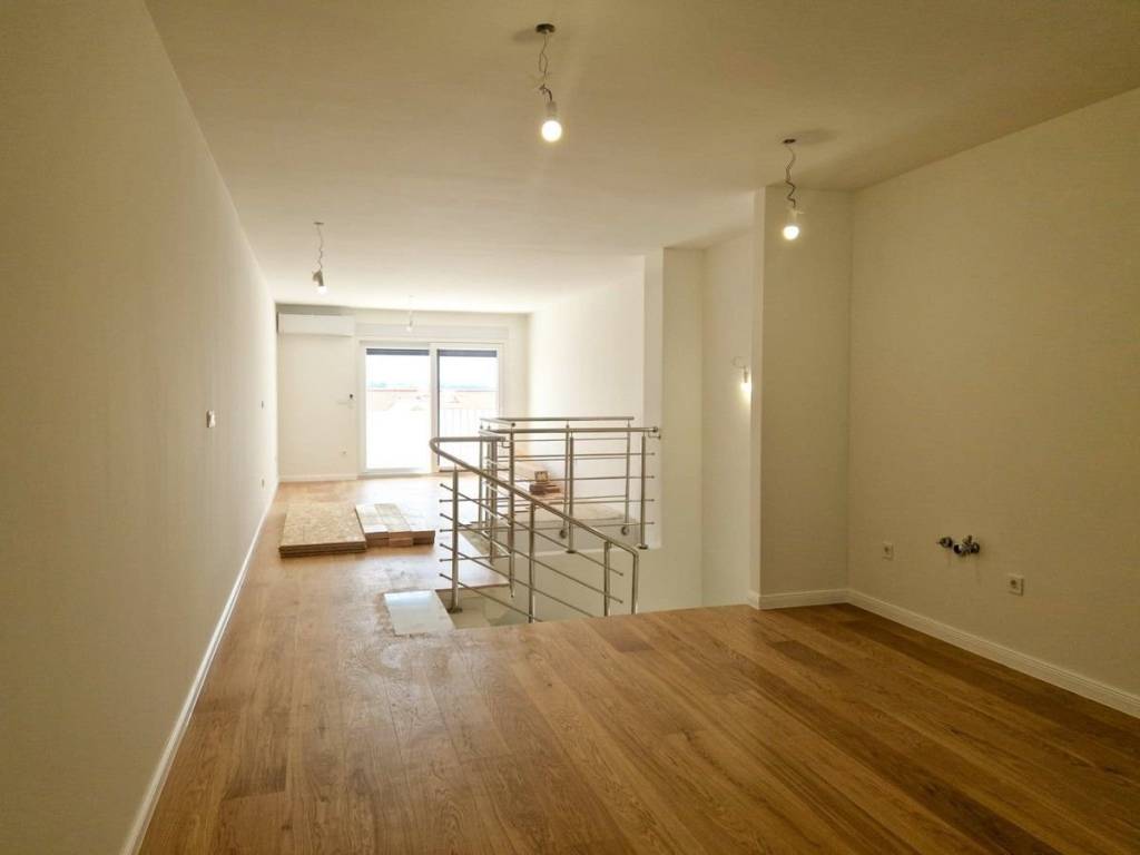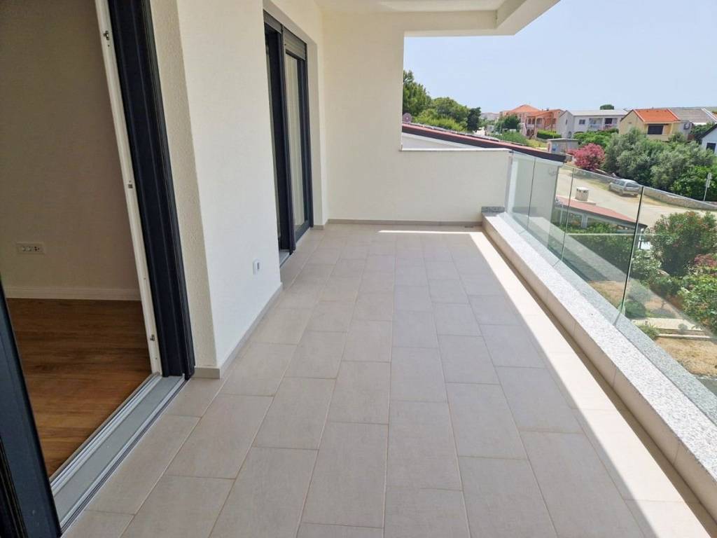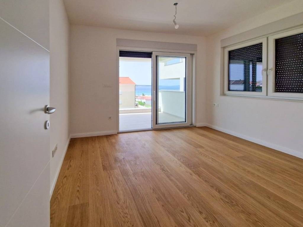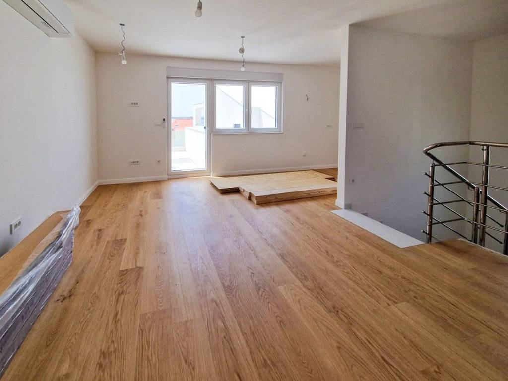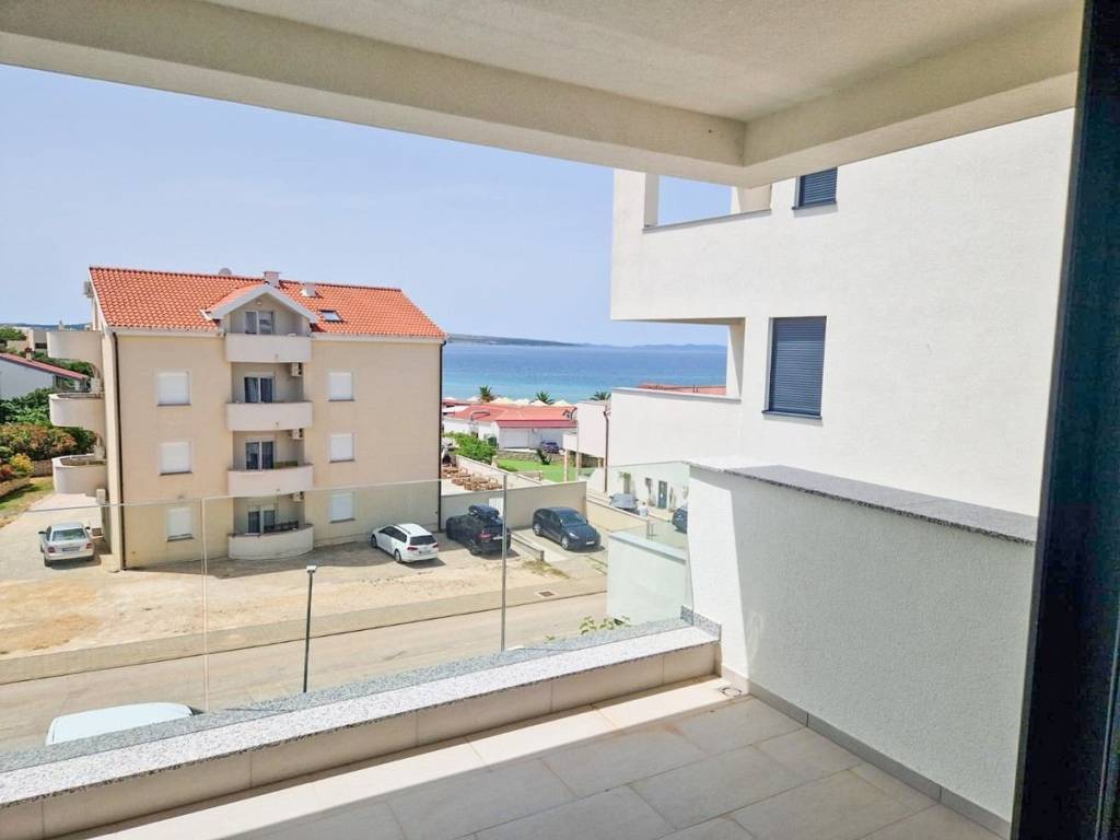 An apartment is for sale in Povljana on the island of Pag, situated on the second floor of a modern residential building without an elevator, spanning two levels (orientation: south-west). The first level consists of three bedrooms, one of which has an en-suite bathroom, each bedroom has a balcony, bathrooms with toilets, a hallway, and a staircase leading to the second level. The second level includes a living room with a kitchen and dining area in an open space concept, a bathroom with a toilet, and a balcony. The apartment also includes a storage room in the building"s basement.