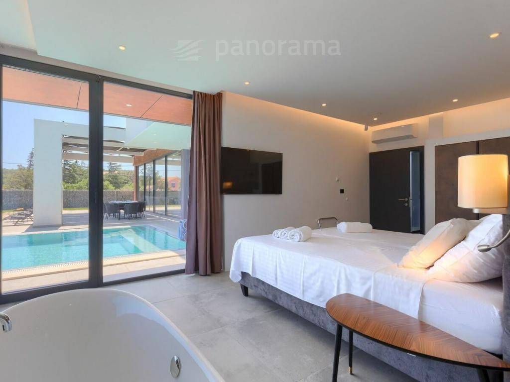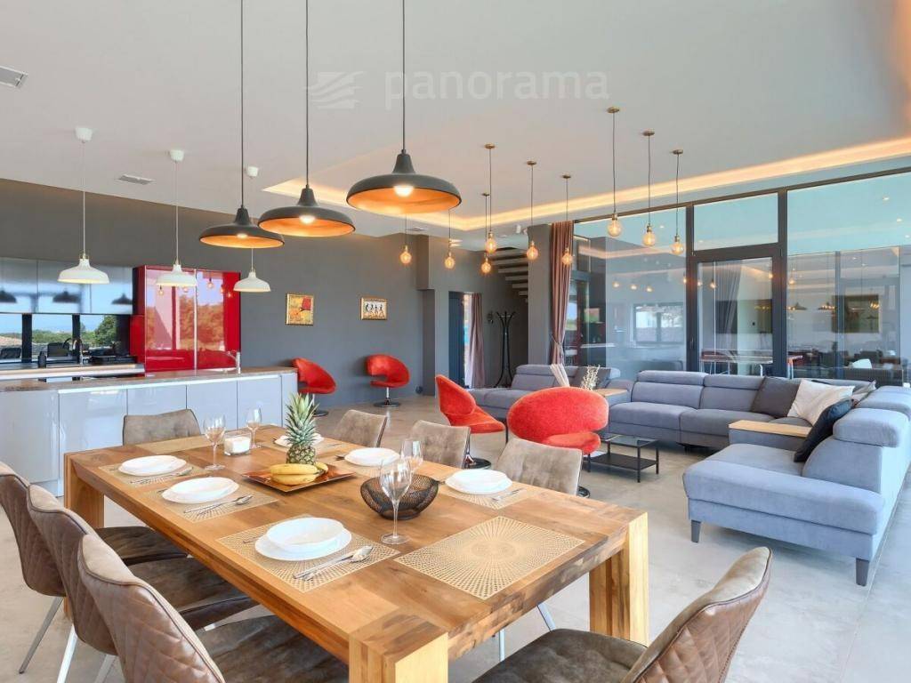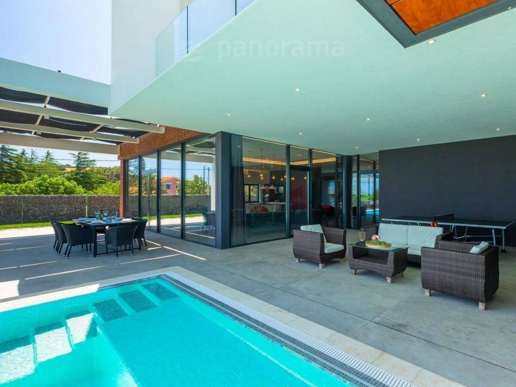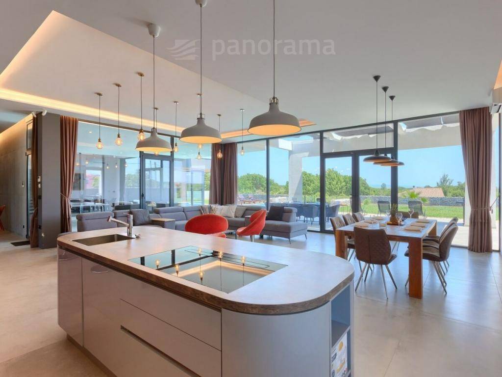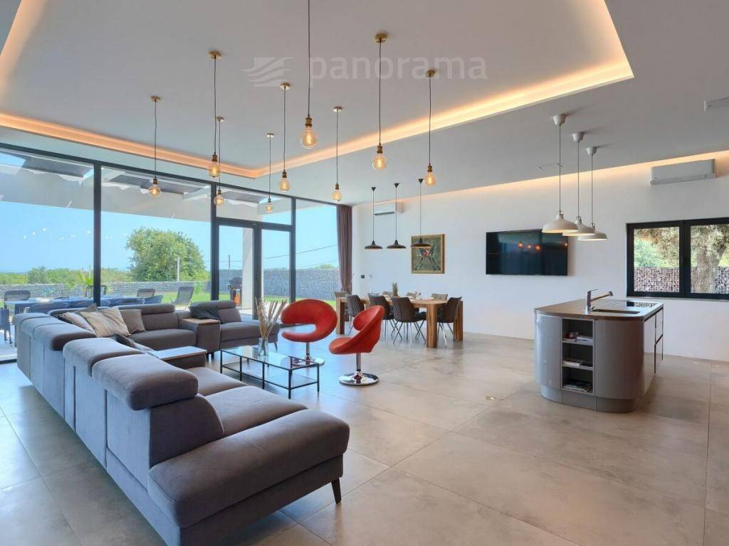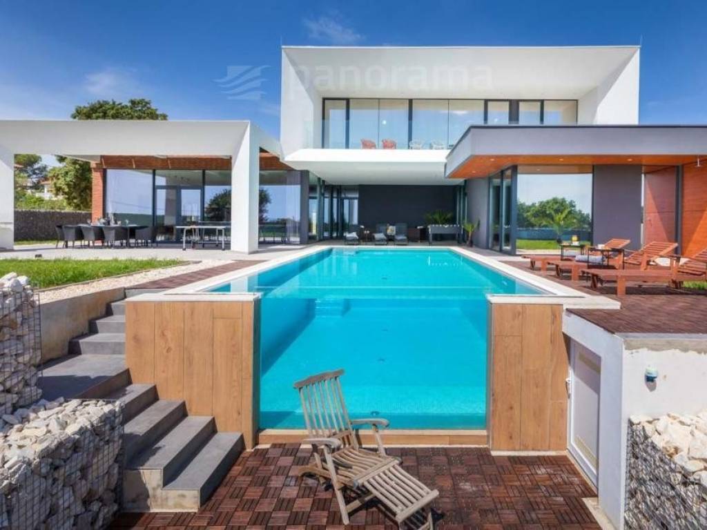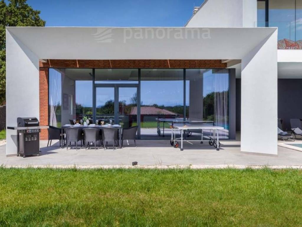 This brand new holiday villa is a real architectural attraction and one of the most beautiful houses in Istria. It is located in the immediate vicinity of the sea, and is located on the southernmost tip of Istria, in the small fishing village of Ližnjan, which is connected to the tourist center of Medulin. The immediate vicinity of the largest city in Istria - Pula gives your vacation an inexhaustible source of additional content. This architectural beauty has a wonderful view of the sea and the islands of Cres and Lošinj. The house is completely new and completed in mid-2021.