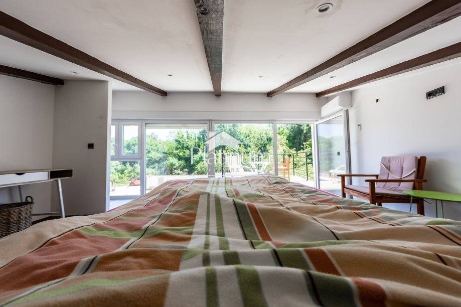 Vendesi casa singola su un piano immersa nel verde e nella pace. Casa dal design moderno su un terreno di 400 m2 con possibilità di costruire una piscina. Si compone di piano terra e primo. Al piano terra si trovano soggiorno, cucina, sala da pranzo, bagno con accesso al giardino, al primo piano ci sono due camere da letto, una delle quali ha accesso ad un bellissimo terrazzo. Viene venduto arredato C'è anche un ripostiglio nel cortile, il terreno è recintato per la privacy. La casa è protetta da telecamere di sicurezza Porte e finestre in PVC Condizionatori di riscaldamento-raffreddamento Pozzo trivellato per il giardino Fognatura Proprietà