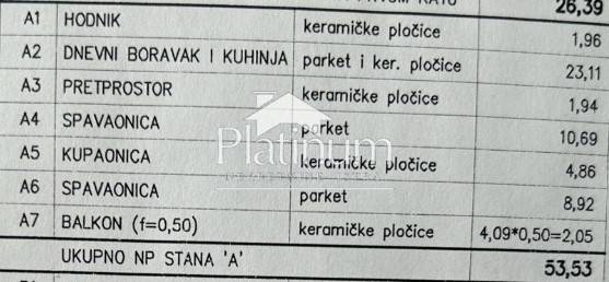 Nel centro più ampio di Pola, è in vendita un appartamento al primo piano, composto da ingresso, soggiorno con cucina e sala da pranzo, due camere da letto, bagno e balcone. A parte con l'appartamento si acquista un posto auto coperto per 25.000. Piastrelle in ceramica e pavimenti in parquet. Nell'edificio sarà installato un ascensore. Climatizzatore riscaldament