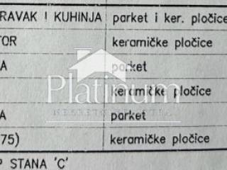 Nel centro più ampio di Pola, è in vendita un appartamento al primo piano, composto da ingresso, soggiorno con cucina e sala da pranzo, due camere da letto, bagno e loggia. A parte con l'appartamento si acquista un posto auto coperto per 25.000. Piastrelle in ceramica e pavimenti in parquet. Nell'edificio sarà installato un ascensore. Climatizzatore riscaldament