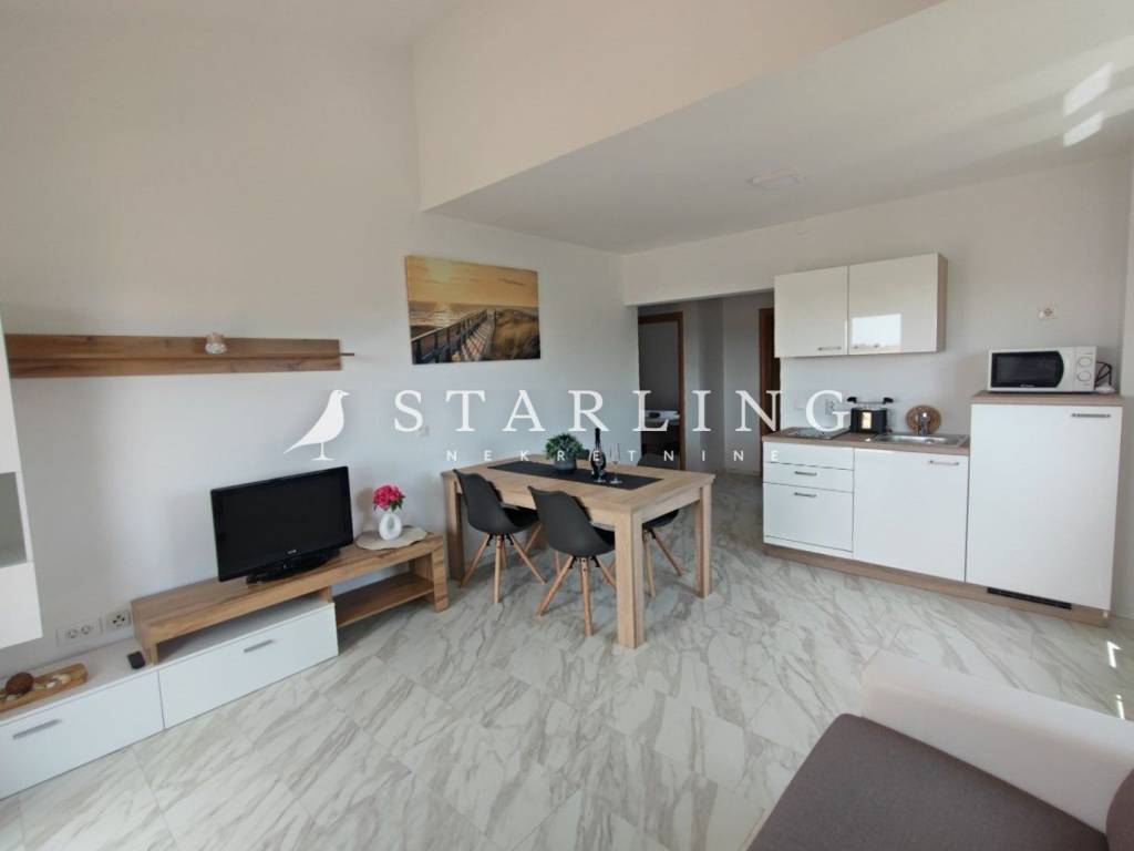 There are two apartments of 45 and 40 m2 on the first floor, and two apartments of 45 and 40 m2 on the third floor. The apartments on the upper floors have a beautiful view of the sea, Cres and Liznjan.