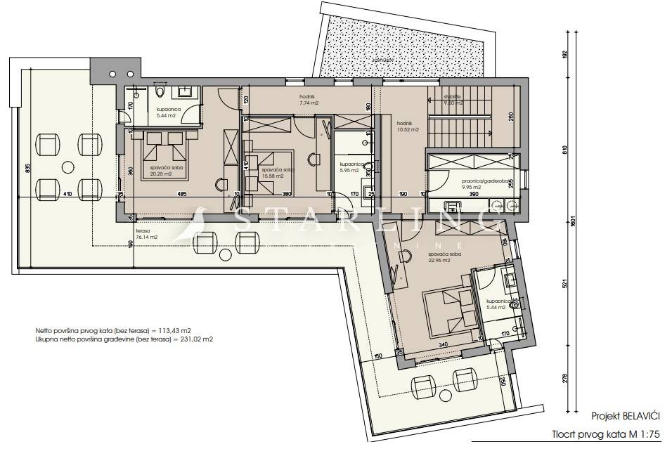 Na katu vile bi se nalazile još tri spavaće sobe svaka sa svojim kupatilo i dijelom terase.