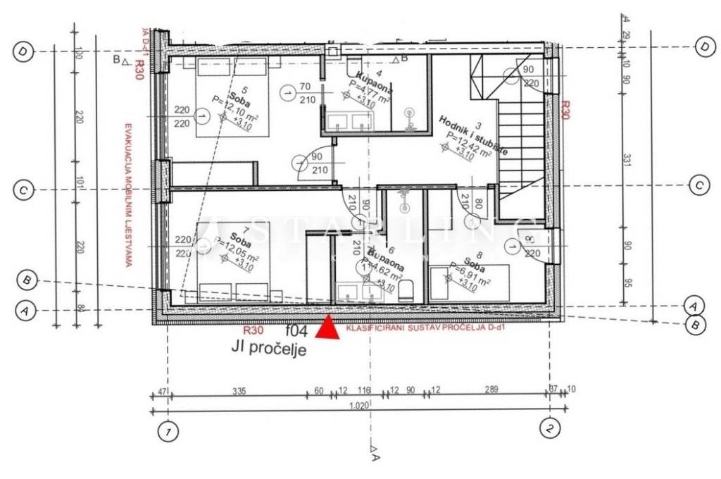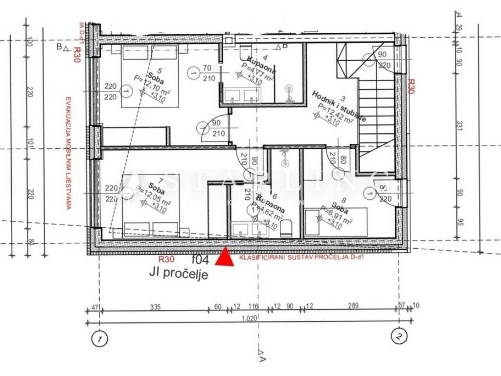 A three bedroom apartment of 120 m2 on two floors is up for sale. The planned completion of construction is in the third quarter of 2023.