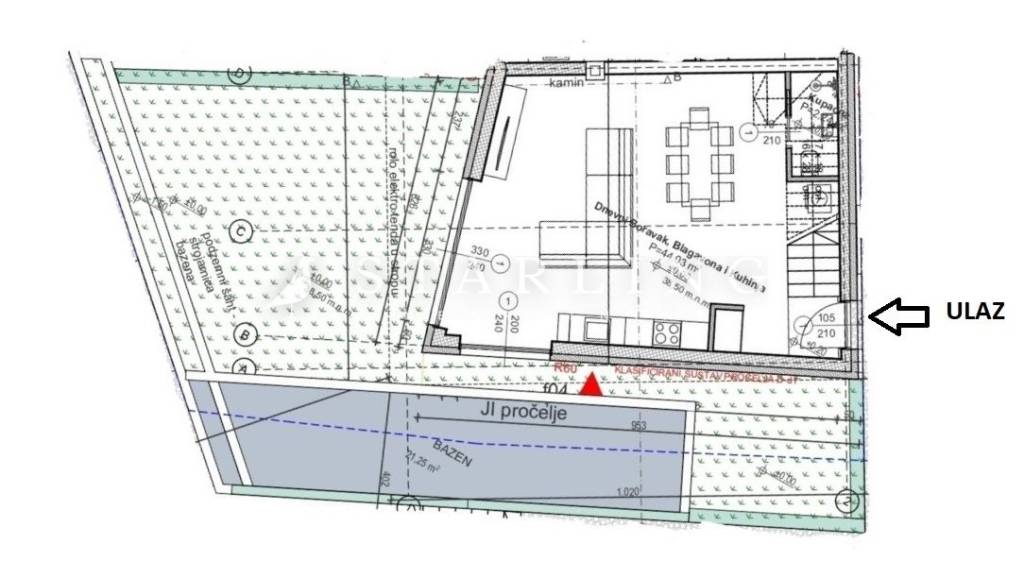 - GROUND FLOOR: living room with kitchen and dining room, toilet, uncovered terrace, swimming pool and garden.