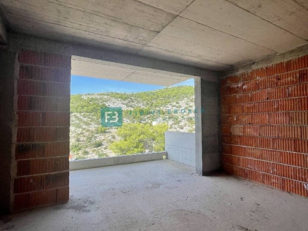 PRIMOŠTEN - Modern villa for sale, in the Roh-Bau construction phase, located on a hill with a beautiful view of the sea!