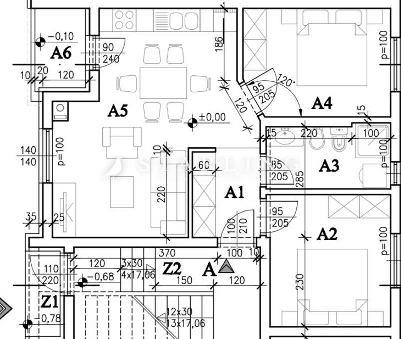 A one-bedroom apartment of 55 m2 for sale, located on the first floor of a residential building in Pula.