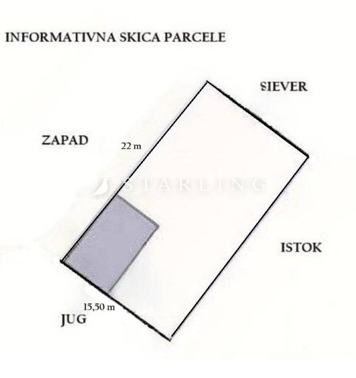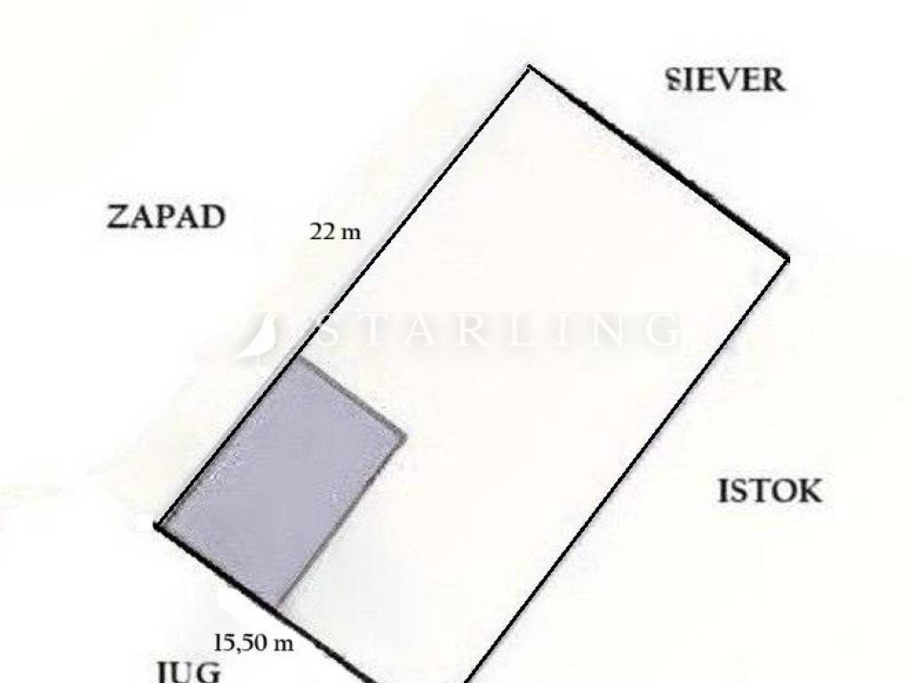Prodaje se mješovito građevinsko zemljište (poslovno – stambene namjene) sa starom kućom za rušenje, pravilnog oblika površine 340 m2.