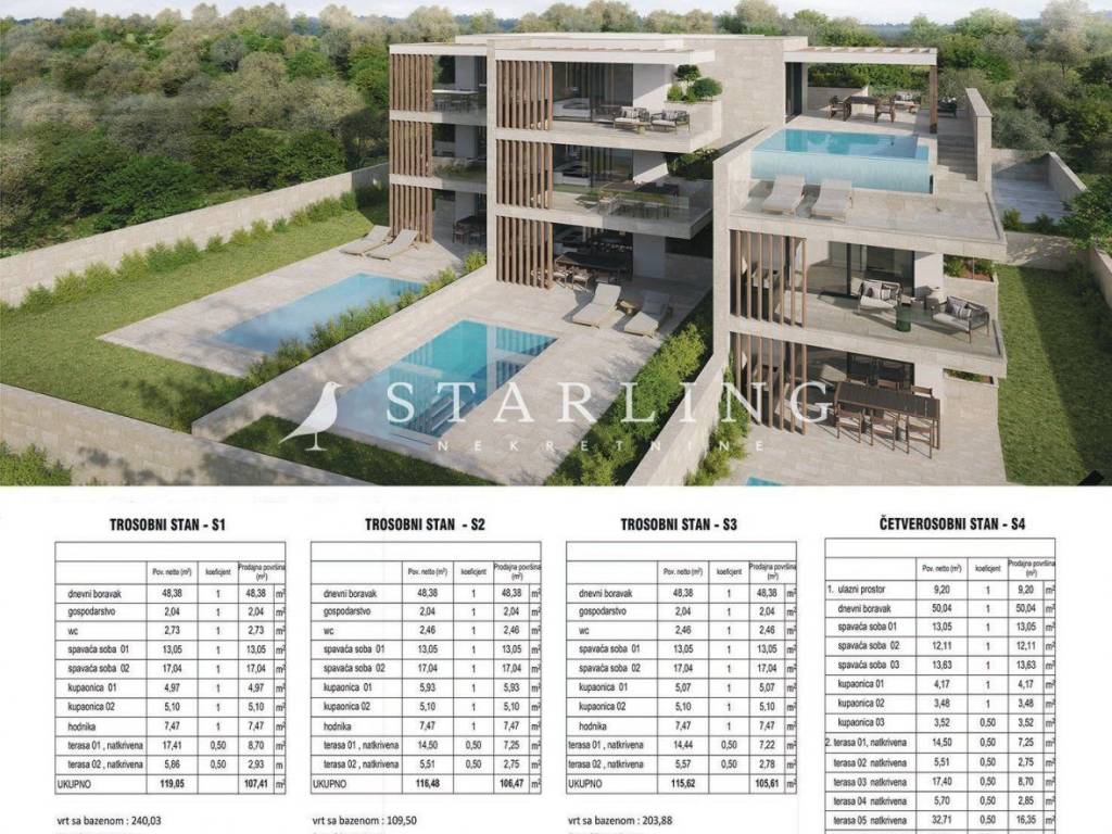 Prodaje se građevinsko zemljište u gradu Krku površine 930 m2 s idejnim rješenjem za izgradnju 4 stana, svaki s privatnim bazenom i pogledom na more.