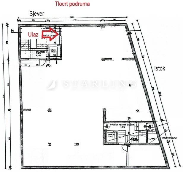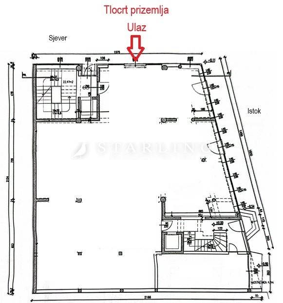Etaža u prizemlju površine 286 m2 sastoji se od jedne open-space prostorije i wc-a, te je stubištem i liftom povezano s podrumskom etažom površine 283 m2 koja se sastoji od dvije prostorije.