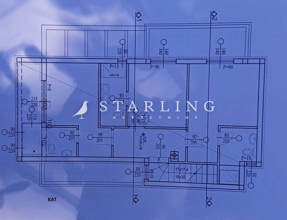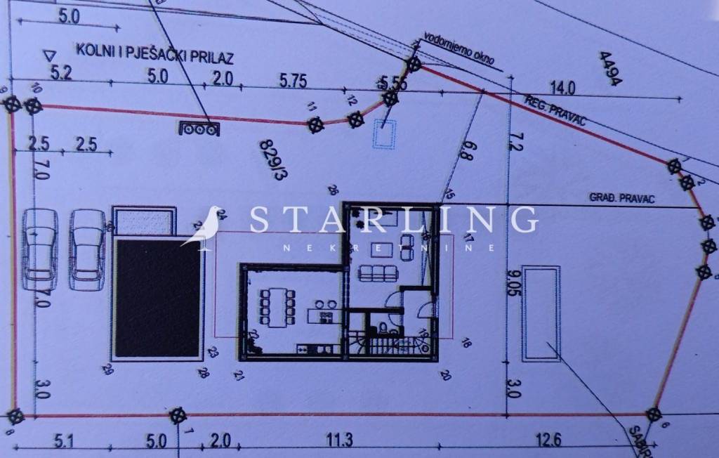 Prodaje se građevinsko zemljište površine 644 m² s ishođenom pravomoćnom građevinskom dozvolom za izgradnju moderne katnice s bazenom. Projektom je predviđena obiteljska kuća suvremenog dizajna s ukupno tri spavaće sobe, od kojih svaka ima vlastitu kupaonicu i nalazi se na katu, dok je u prizemlju planiran prostrani dnevni boravak s kuhinjom, blagovaonicom i izlazom na terasu i bazen.
