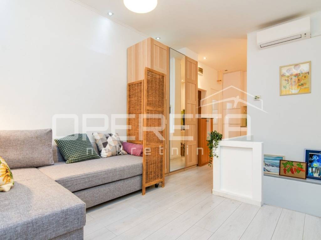 STAN PRODAJA, PANTOVČAK, ulica Pantovčak kod Britanca, 22,47 m2 upisano u ZK, u stvarnosti 40 m2 (suterenski dio nije u papirima i nije legaliziran). Šarmantan dvoetažni stan nadomak Britanca, odmah useljiv. U stan se ulazi iz prizemlja i na prizemnoj etaži se nalazi kuhinja sa blagovaonicom koja ima izlaz na mali balkončić, dnevna sobe s pogledom na ulicu Pantovčak iz koje se stepenicama spušta u suterenski dio (visina dolje je 2 metra) gdje se nalazi spavaća soba, degažman i kupaonica sa wc-om (i soba i kupaonica imaju prozor!). Parking je ispred zgrade 1. zona. Grijanje je električno. Stolarija dvoslojni PVC, na podu laminat, klima u stanu. Preporuka!