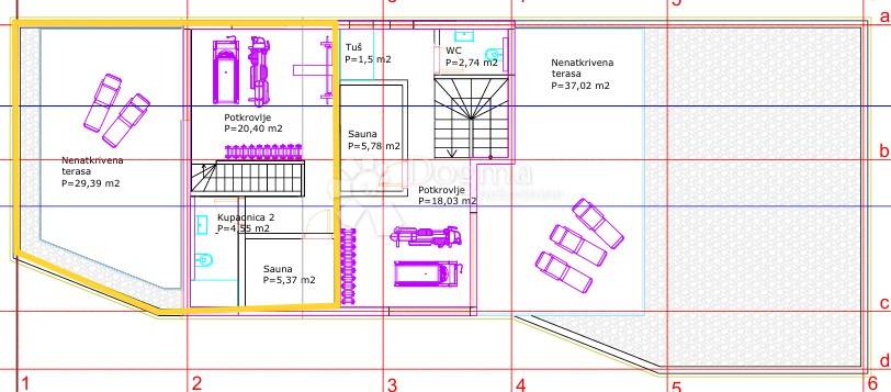 In a sought-after location in Rovinj, 1000 m from the center and 600 meters from the sea, we present this project consisting of carefully selected, top-quality materials. The building will have a total of 6 residential units, ensuring peace, privacy and high quality of living. Apartment E, located on the 2nd floor and attic, with a total net area with coefficients of 113.75 m with an excellently designed layout: - entrance hall - guest toilet - laundry room - two spacious bedrooms - bathroom - large open-space living room with kitchen and dining room - spacious uncovered roof terrace - sauna, gym and bathroom on the top floor The living room leads to a covered terrace with a view of the pine forest, a protected green area on which no future construction is planned, which guarantees you lasting peace and privacy. Heating will be provided by an autonomous heat pump system with underfloor heating, ensuring high energy efficiency and a pleasant stay throughout the year. Air conditioners are provided for cooling. During the construction phase, you are allowed to participate in the selection of materials, flooring and the adjustment of the interior design and layout, so that the apartment fully meets your wishes and lifestyle. The apartment also includes: -one parking space with the option to purchase an additional parking space. Purchase via credit is possible. The move-in is scheduled for the last quarter of 2026. This investment opportunity offers you everything, peace and privacy and walking distance to the beach or the city center in one of the most sought-after locations in Rovinj. To organize a viewing and for all information, please call: MICHAEL RADOLA Licensed agent for Croatia and Dubai - UAE GSM: +385 91 575 3640 Email: michael.radola@dogma-nekretnine.com